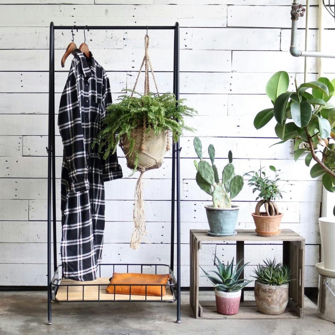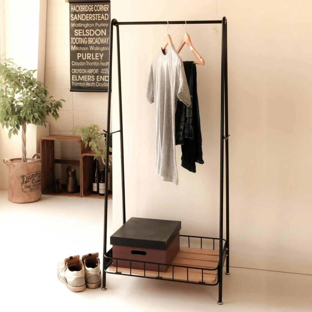 ・生産国:中国・耐荷重:ハンガー:15kg・フレーム:スチール(φ15.9mm) 粉体塗装・カゴ:スチールフレーム(φ7、φ5mm) 粉体塗装・底板:天然木(パイン材) 塗装・・足元の棚には大容量のスペースを確保。コンパクトでありながら充実した収納力が魅力です。