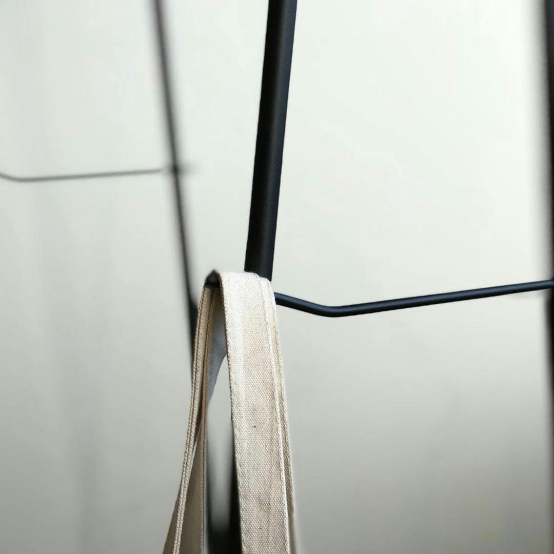 パインウッドとスチールの組み合わせがオシャレなハンガーラックです。横幅は約615mmとコンパクトサイズで、プライベートルームやリビング、玄関など、ちょっとした空間にも置いていただけます。ハンガーの高さの内寸は1225mmあり、ミドル丈のワンピースやコート等も掛けられます。棚はカゴ状で、置いた荷物が落ちにくい形状。小物を掛けられるサイドフックが付いているのも嬉しいポイントです。