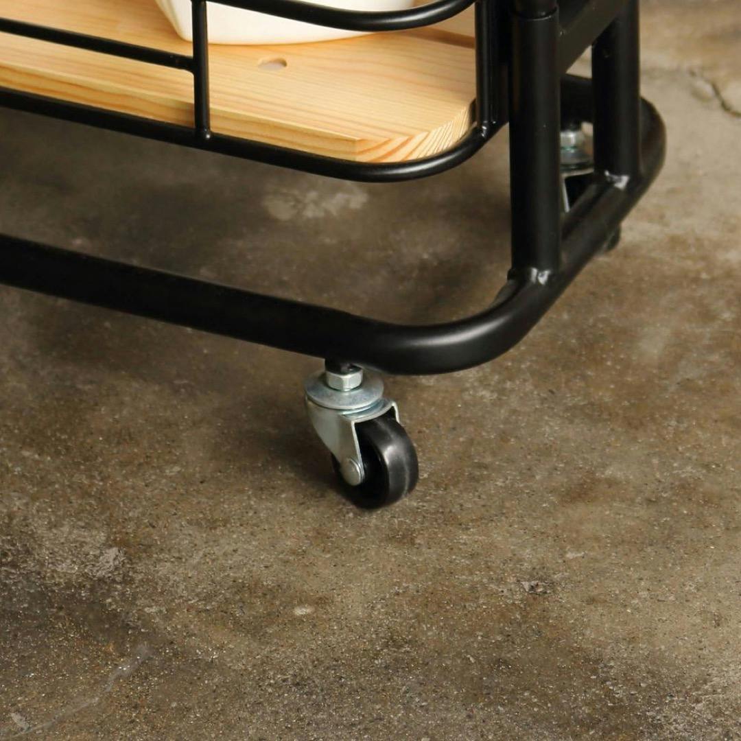『BY CAGE SLIM WAGON』は、パインウッドとスチールの組み合わせがオシャレな、ちょっとした隙間に収まる省スペースタイプのワゴンです。幅約200mmのスリムタイプワゴンで、キッチンやランドリーなどのちょっとした隙間を有効活用することができます。どこにでも置きやすいので、ソファサイドやベット周りでサイドテーブルとしてもお使いいただけます。棚はカゴ状で、置いた荷物が落ちにくい形状です。