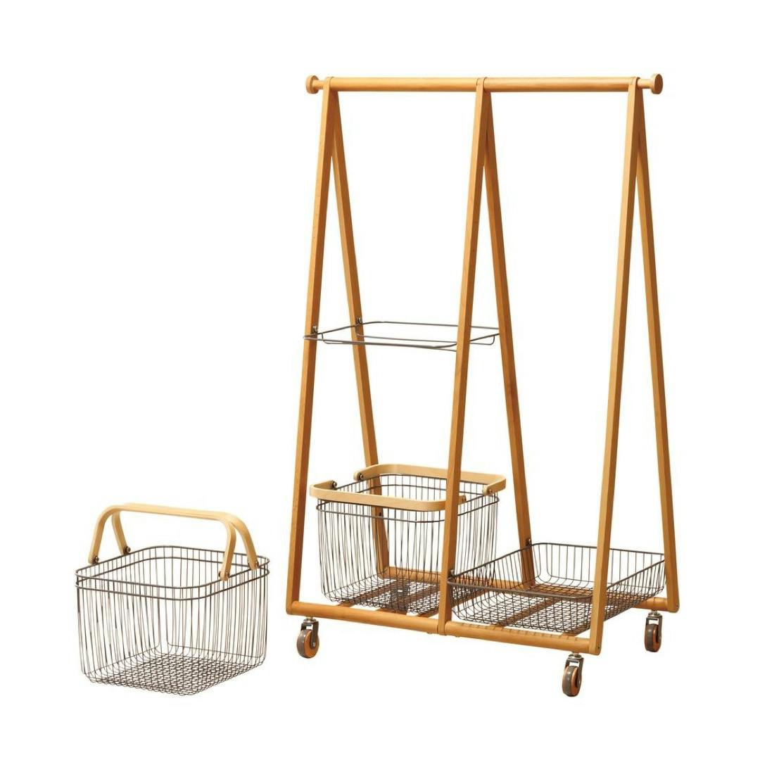 ・生産国:中国・耐荷重:カゴ(取手付):3kg、カゴ:5kg、ハンガー:5kg、取手:1kg、全体:15kg・フレーム:天然木(ビーチ) 塗装・カゴ:スチール 粉体塗装・カゴ取手:成型合板 カバ突板・・コンパクトなサイズのバスケット付きハンガーラック。取手付きの収納カゴは持ち運びも可能です。子供も手が届きやすいサイズなので、親子で一緒に使えます。