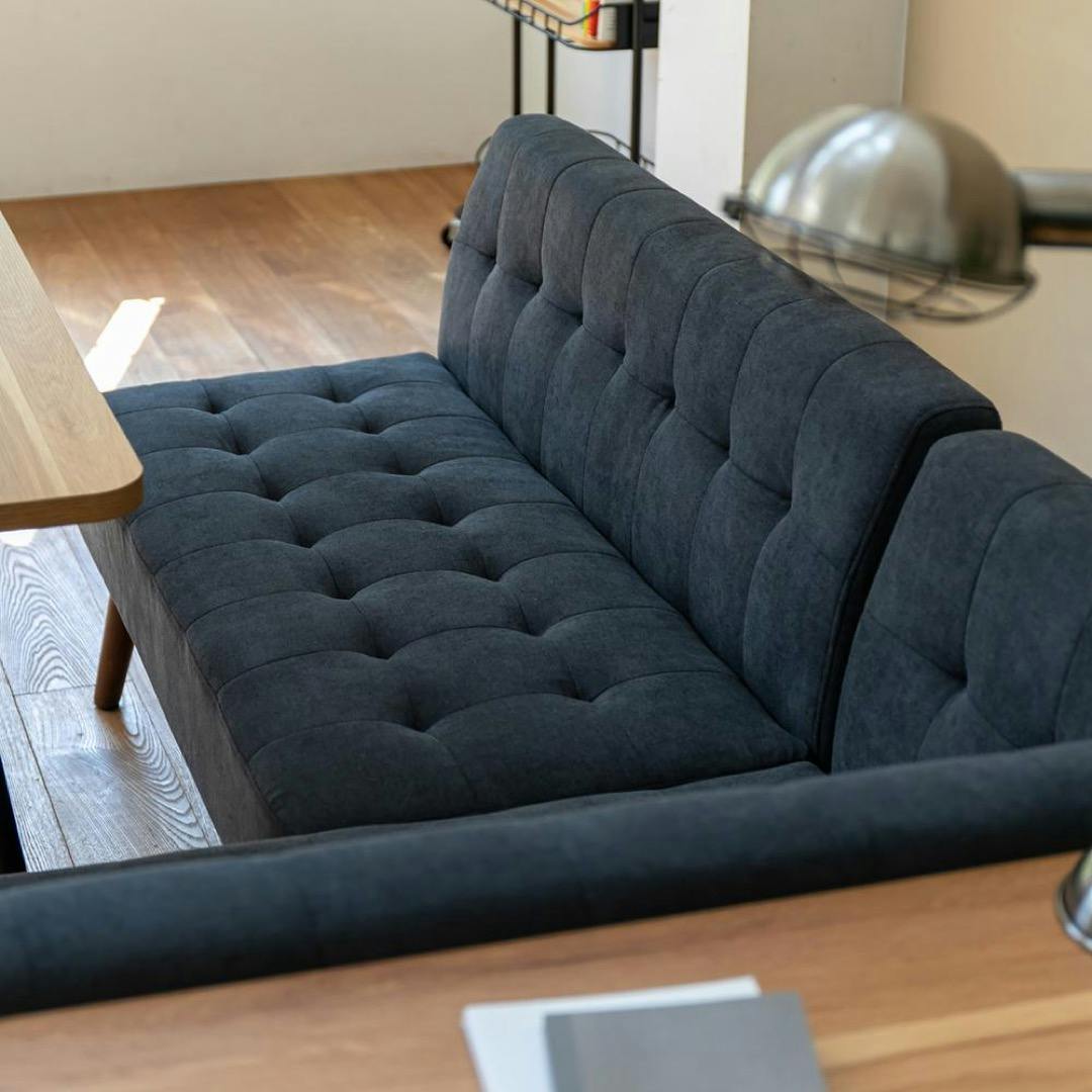 ・生産国:中国・耐荷重:160kg・張地:ポリエステル100%・脚:天然木(ラバーウッド) 塗装・座:ウェービングテープ、Sバネ・背:ウェービングテープ・ラインナップを豊富に揃えたソファは、落ち着いた色合いと手触りがやさしい生地感で仕上げています。