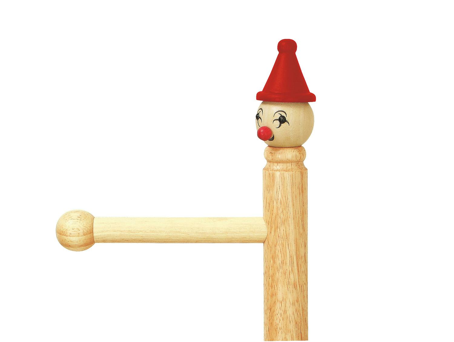 上部にピエロのモチーフがついたキッズハンガー。高さが抑えられているのでお子様でも使いやすいサイズ感になっています。