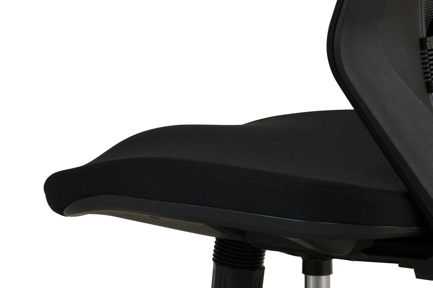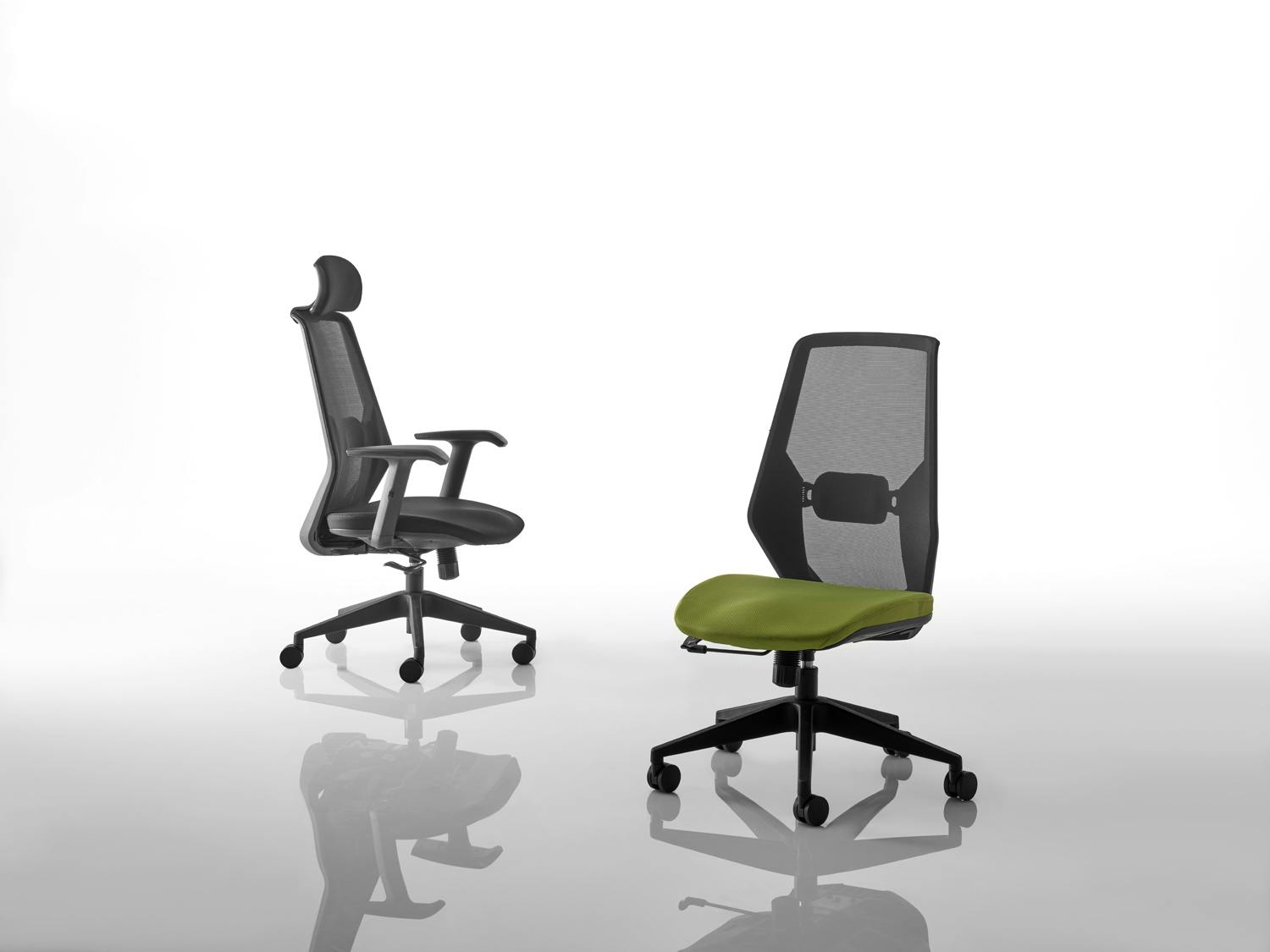標準装備のランバーサポートは体格に合わせて自由に調整でき、しっかりと身体を支えることが可能です。ロッキング時に身体の動きに合わせ、背・座が連動して動き、適正な着座姿勢を維持します。モールドウレタンによる立体的な成型で身体にフィットしやすい形状になっています。座面下のレバーを操作することでガス圧により座の昇降が可能で、体格に合った高さに調節できます。