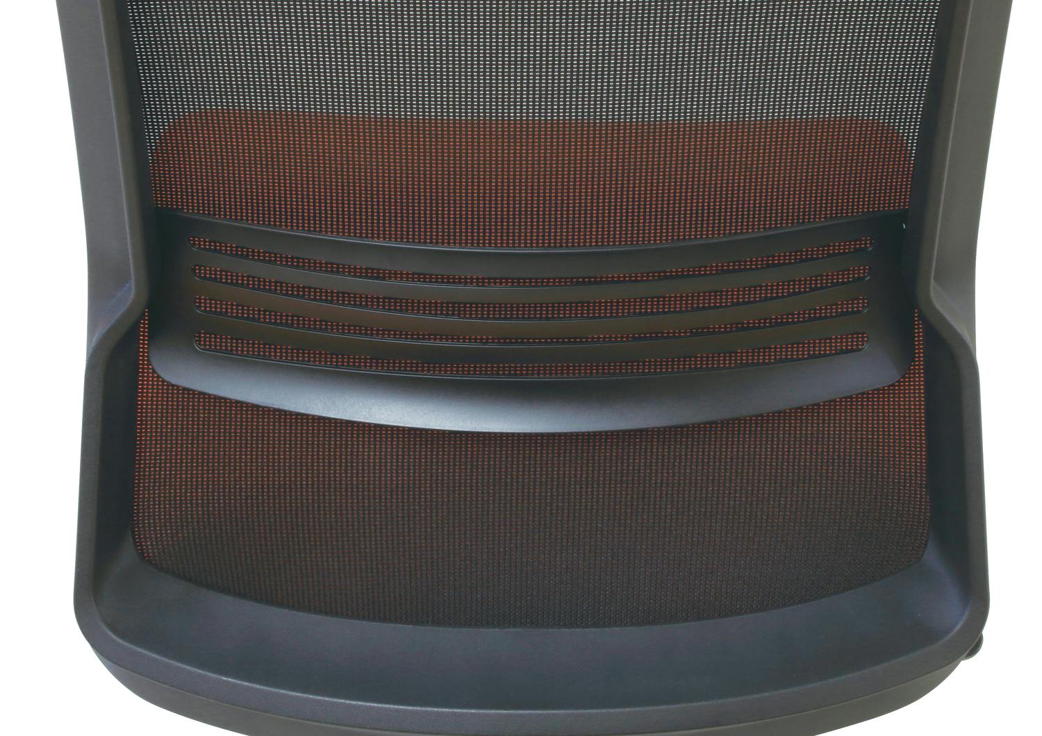 標準装備のランバーサポートは体格に合わせて自由に調整でき、しっかりと身体を支えることが可能です。ロッキング時に身体の動きに合わせ、背・座が連動して動き、適正な着座姿勢を維持します。 ●座昇降(ガスシリンダー式)機能付