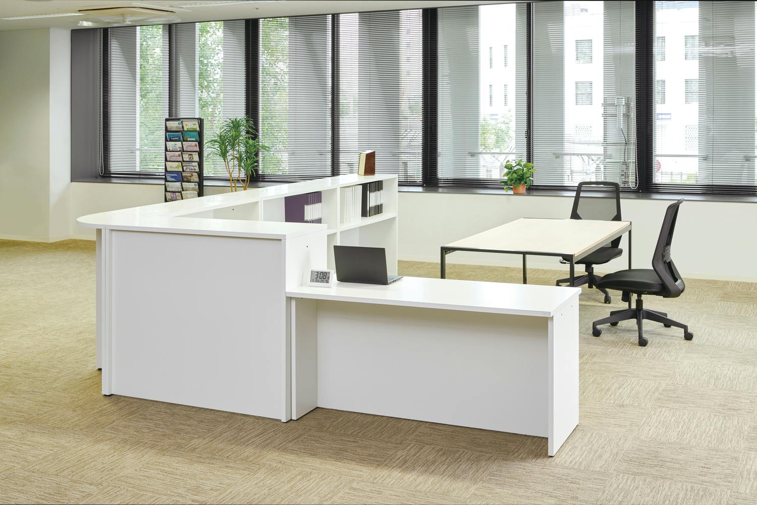 A4 サイズ収納可能な棚付で棚下のスペースにも備品などが収納可能。