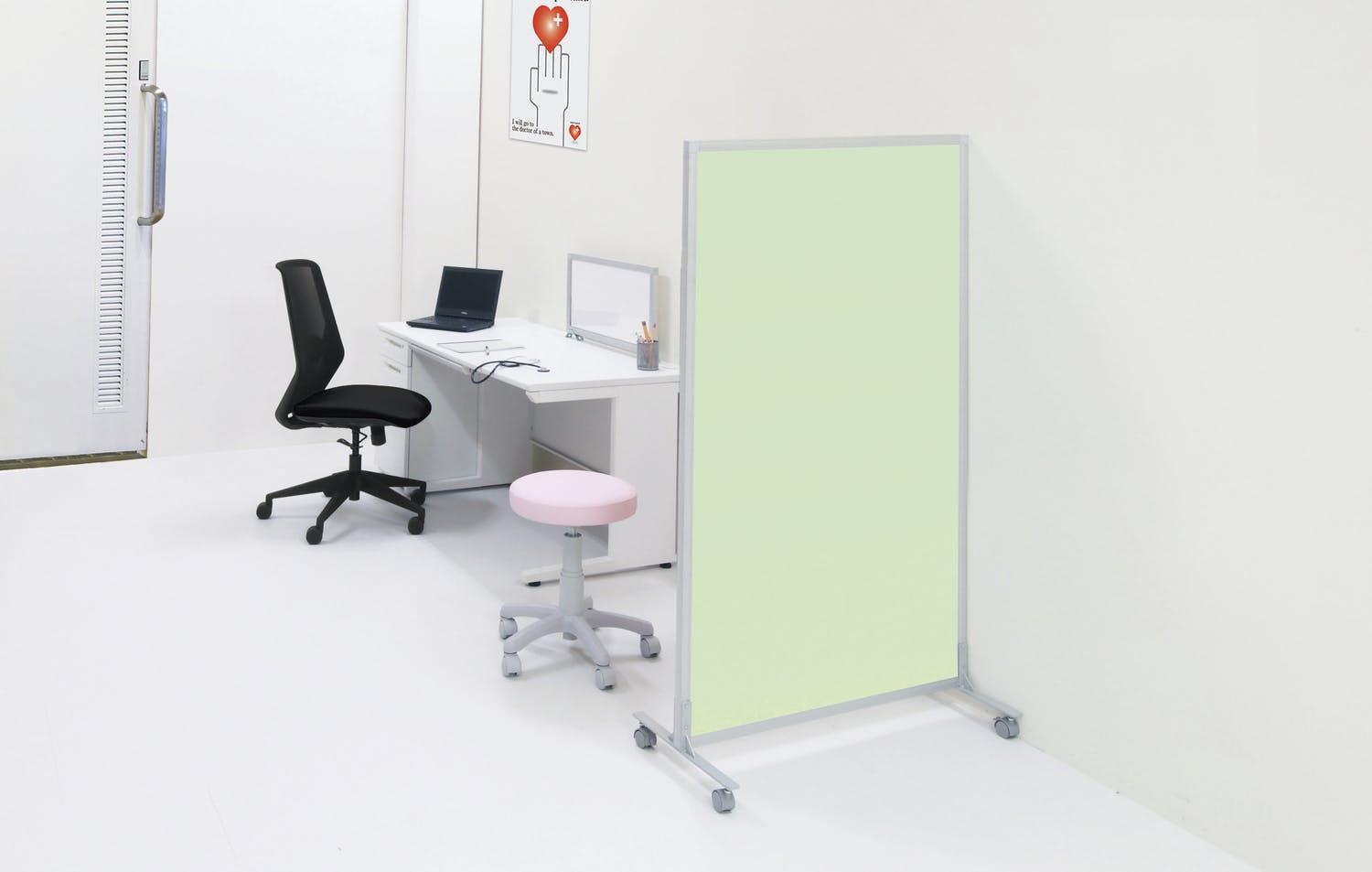座面昇降可。移動に便利なキャスター付。
