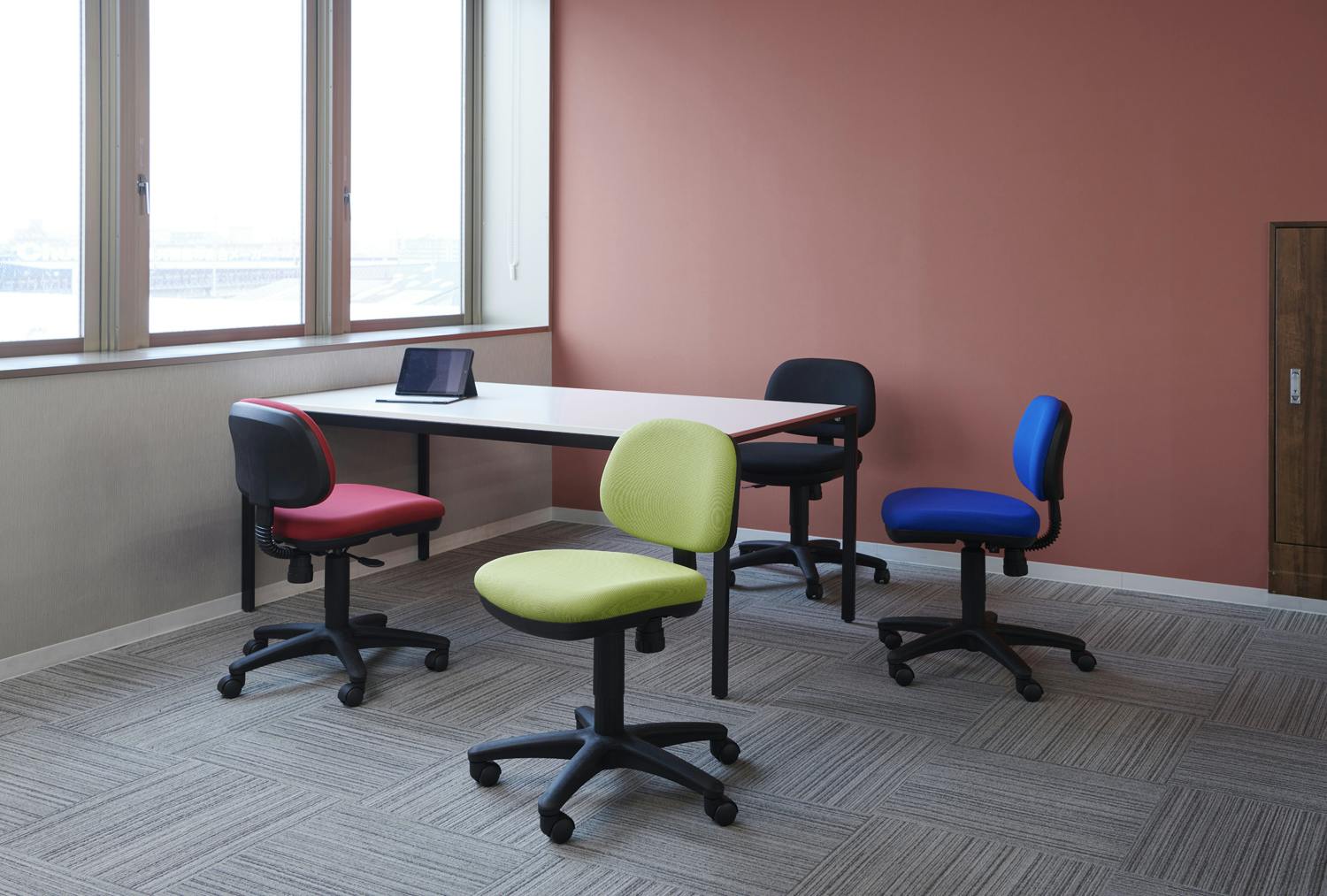 ●座昇降 (ガスシリンダ-式) 機能付 ●背ロッキング機構付