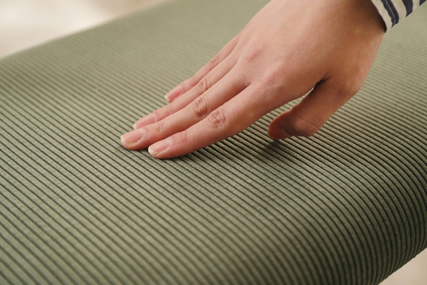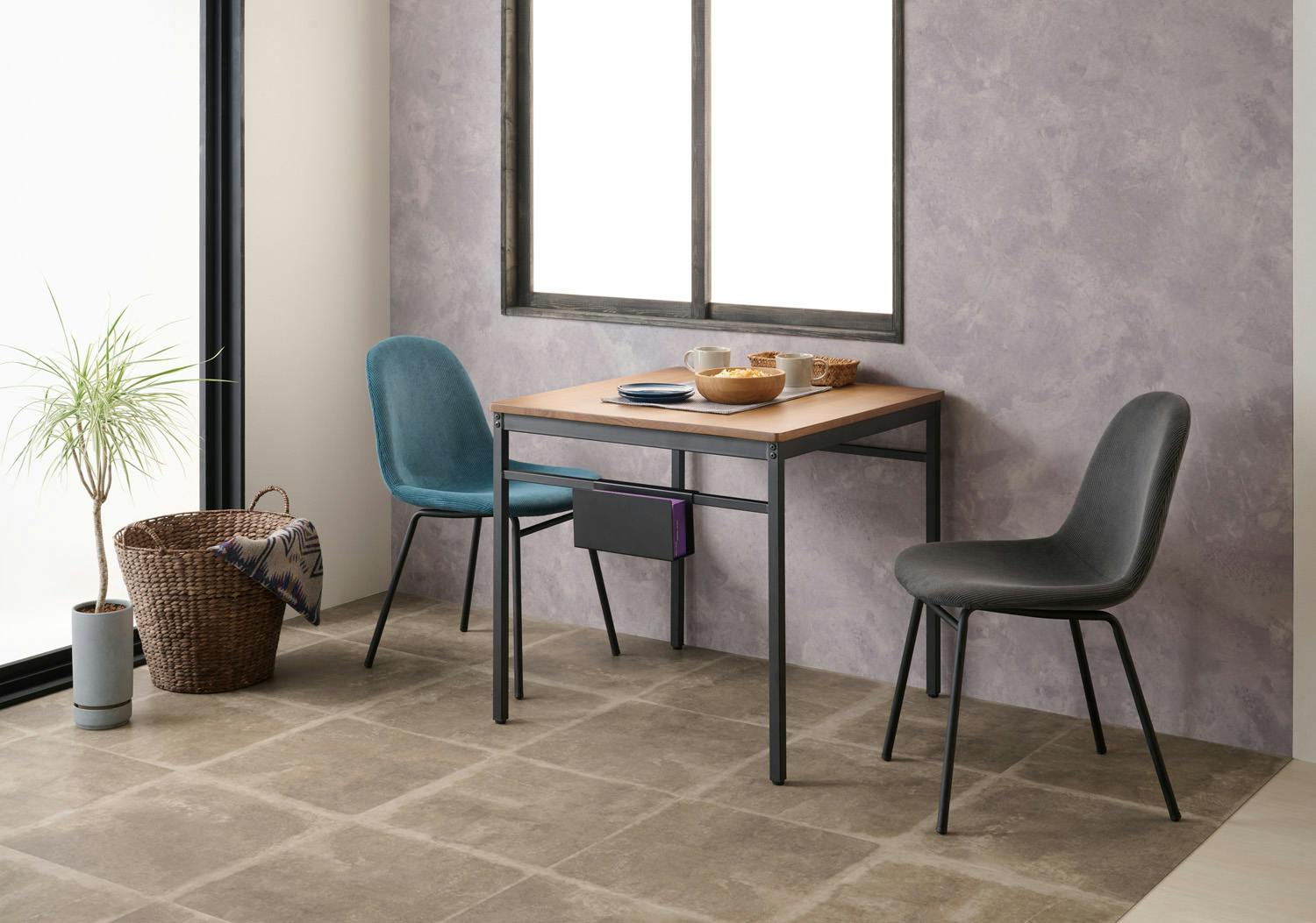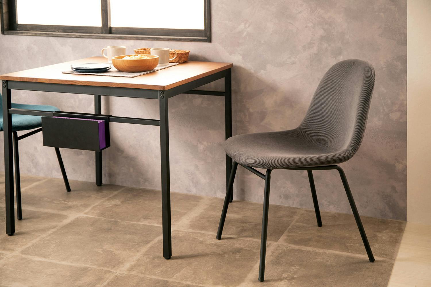 無骨なインダストリアルデザインと温かみのある張り地が調和したダイニングシリーズ。座面の張り地は少しくすんだアースカラーを取り入れたコーデュロイ生地を使用。アイアンの脚との組み合わせが性別問わず使いやすいデザインになっています。立体感のある滑らかな肌触りの生地が心地よいチェアです。