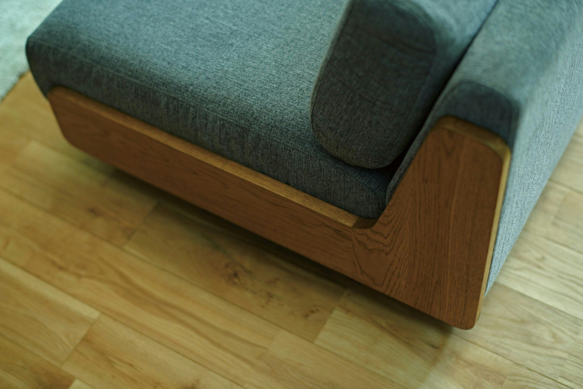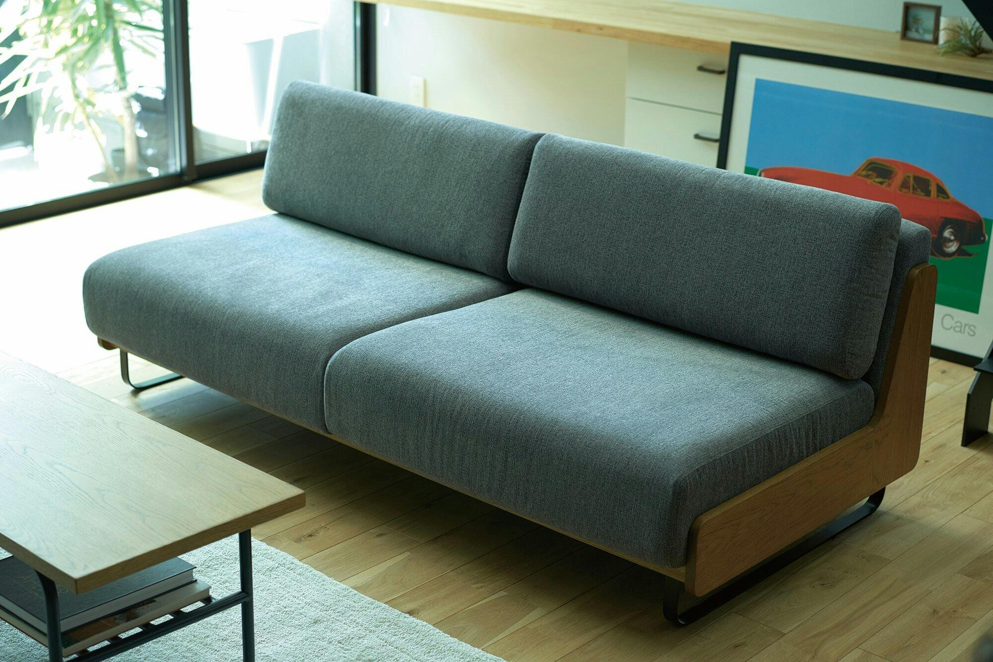 フレームにオーク無垢材を用い、見る方向によって印象が異なるデザインのソファです。背クッションを取り外すことも可能で、デイベッドのようにも使用できます。