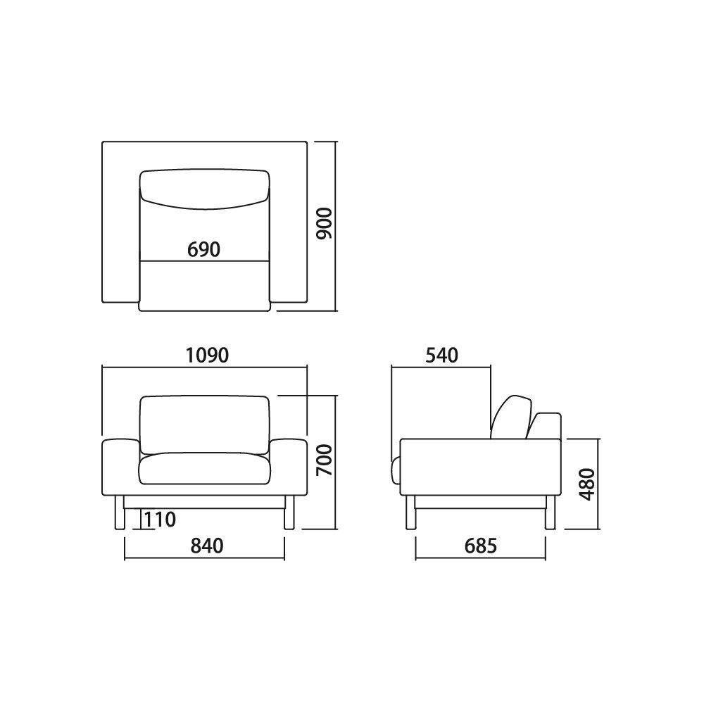 背や肘にボリュームを持たせ、安定感のある佇まいを目指したソファです。背が低く、座面は丸くゆったりとしているのでかわいらしい印象です。2seaterは全体の幅も広く、肘を低く設定しているのでごろんと横になるのにも適しています。背クッションは肘側にも設置が可能です。