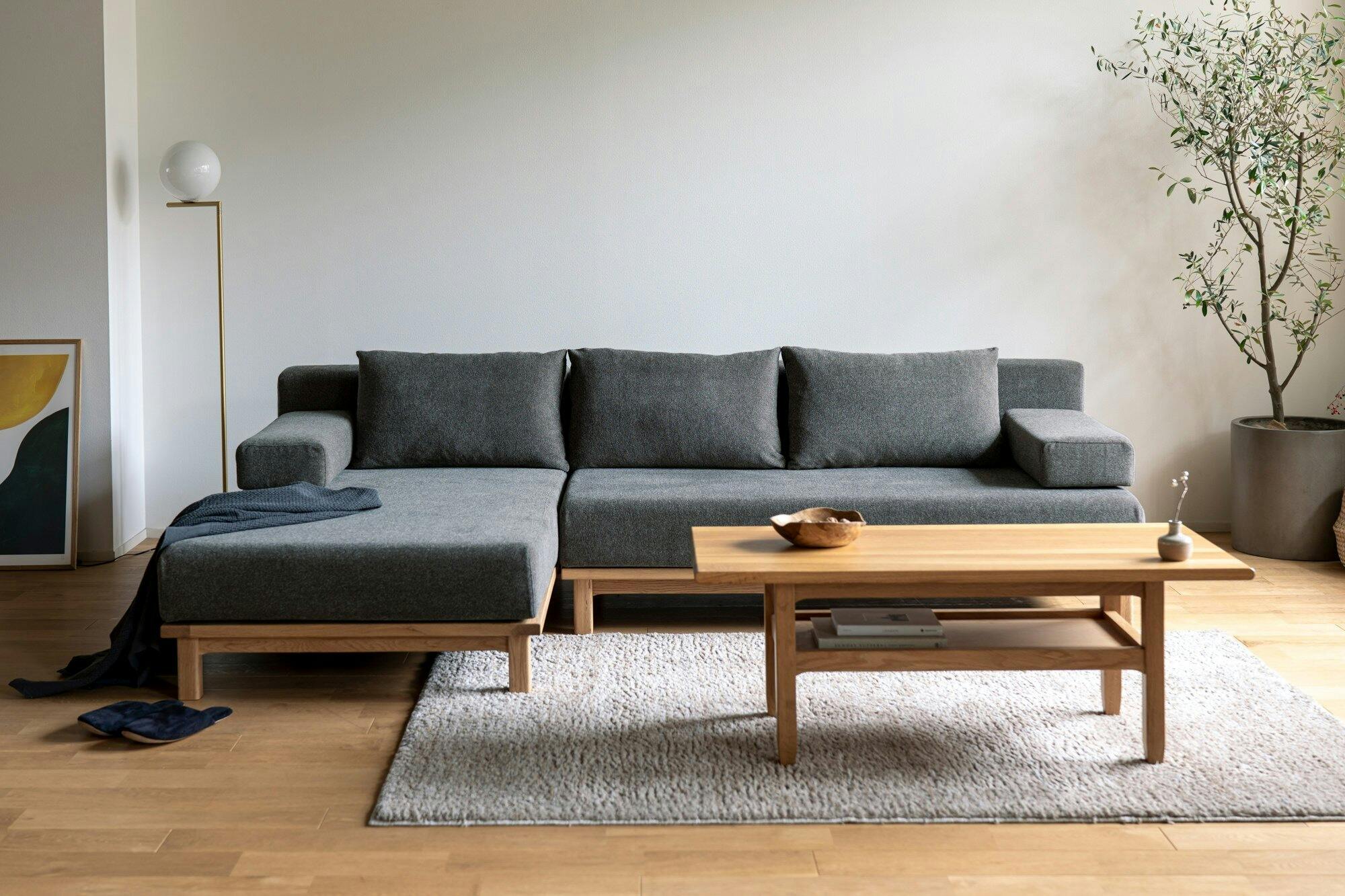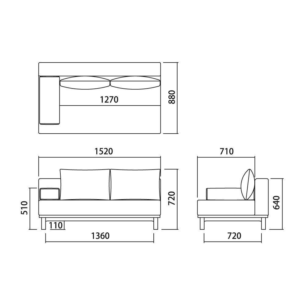 幅、奥行きの異なる3サイズ+オットマンの展開のユニットソファです。背クッションと肘クッションが付属しており、組み合わせや配置方法によってお部屋の大きさや過ごし方に合わせた使い方ができます。