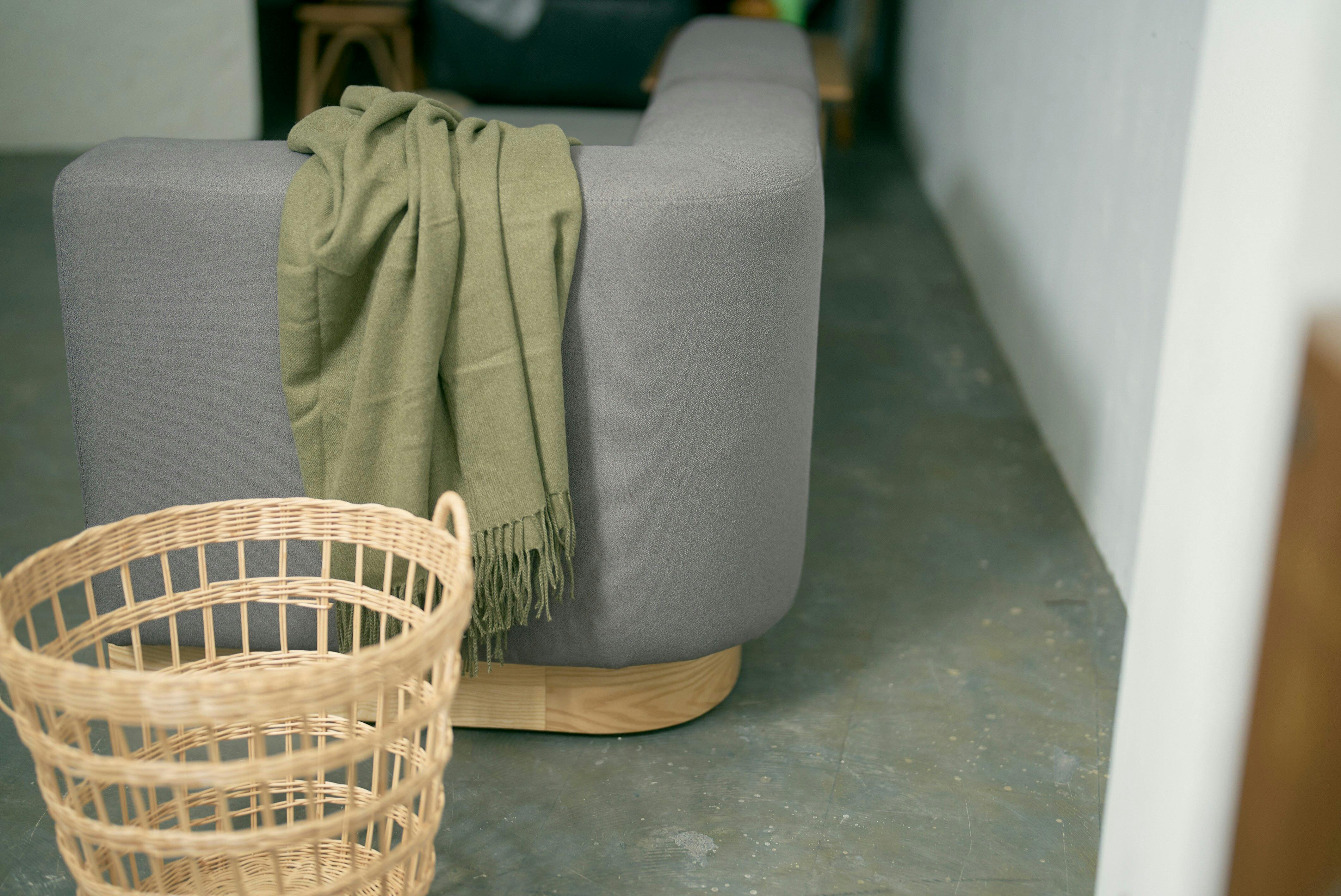 ボリュームのある本体とアッシュ無垢材を用いたベースで、シンプルながらも細部が特徴的なユニットソファです。コーナー、1人掛け、オットマンを自由に組み合わせることで、レールを繋いでいくように様々な配置が可能です。連結パーツも付属しており2台ごとに固定が可能です。場所を選ばないシンプルなデザインで、コントラクトでもおすすめのソファです。