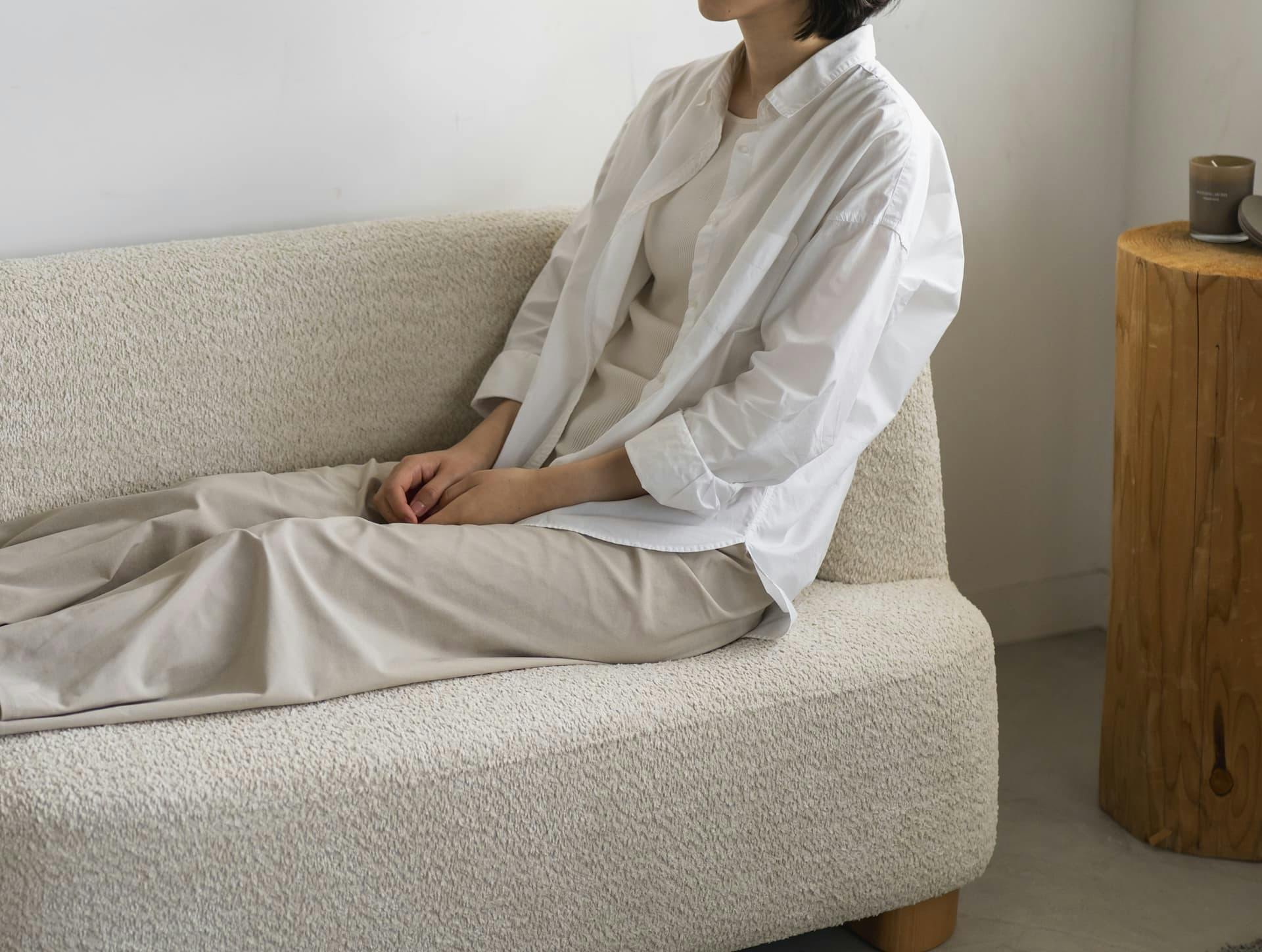 ・自然な丸みを描いたデザインが特徴的で、淡く、儚げでアンニュイな雰囲気のある「enn/アン」シリーズ。コンパクトで扱いやすく1人暮らし用や寝室用の2台目としても使いやすいサイズ感。肘掛けは、背もたれとしても使用可能なのでカウチソファーの様な使い方も可能です。安定感のある脚は天然木のビーチ材を採用。優しい風合いの生地に相性抜群です。モコモコとした立体感ある肌触りの生地で優しく温かみのある印象に仕上げています。