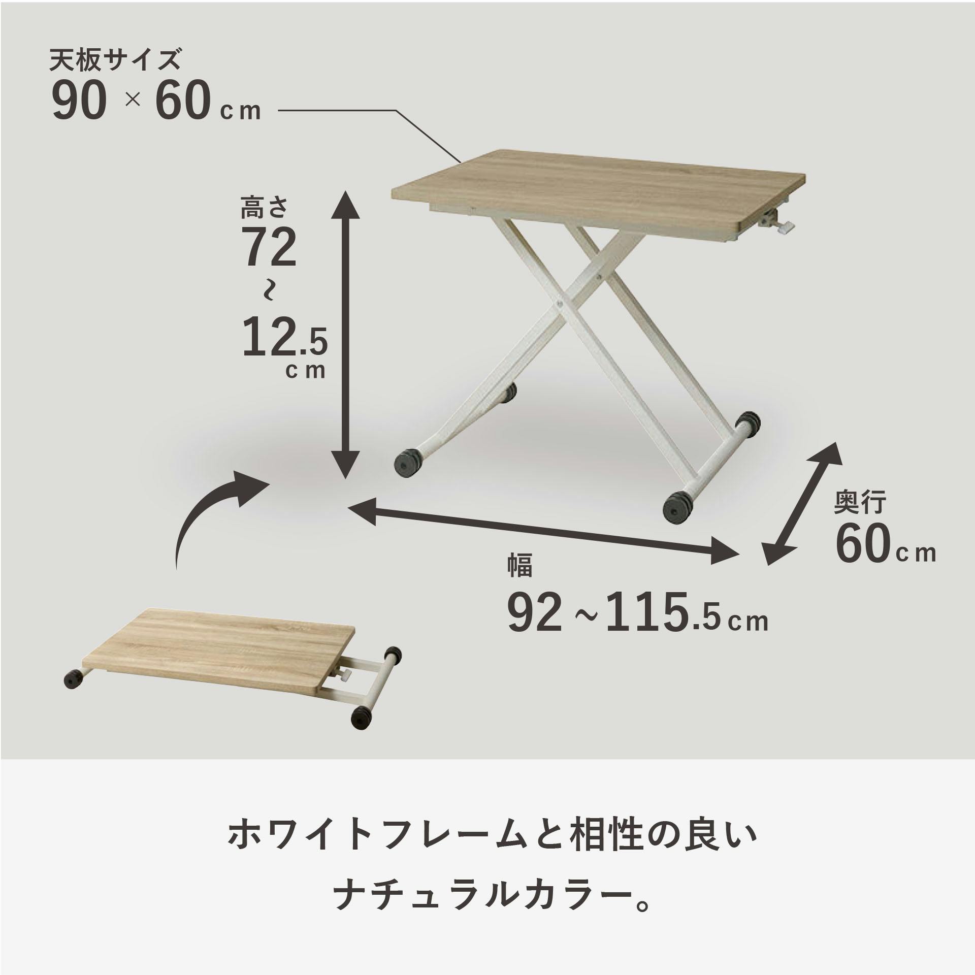 幅92~115.5×奥行60×高さ12.5~72cm※天板サイズ:幅90×奥行60×t2.5cm