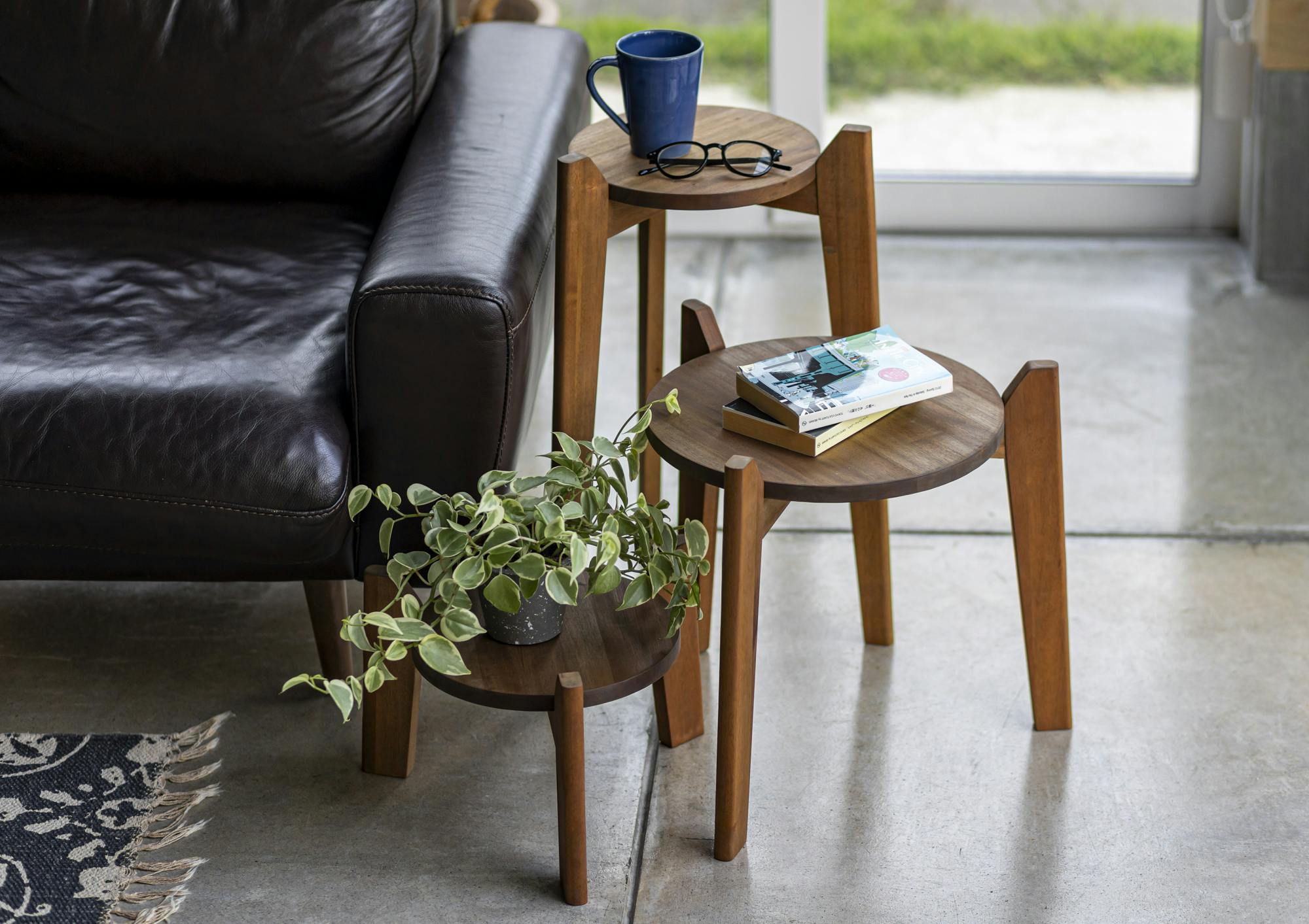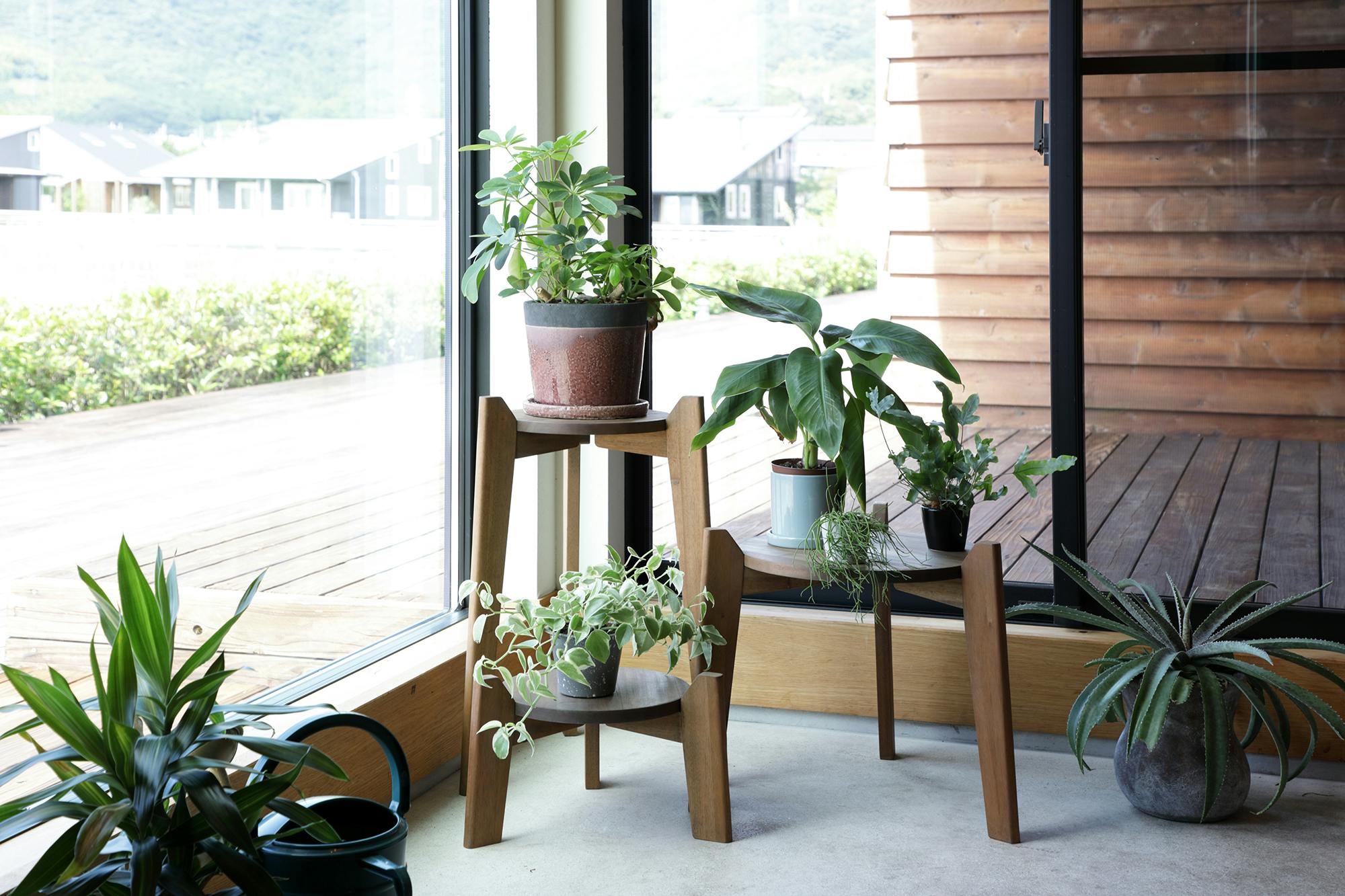 ・ジャルダンはインテリアとグリーンを楽しむ”Room Garden Furniture”をコンセプトに作られました。オイル仕上げの風合いのある木材を使用したライトファニチャーはお部屋の中のグリーンにさり気なく調和します。ジャルダン プランツテーブルセットは、高さの異なるテーブルが3点セットになったアイテム。