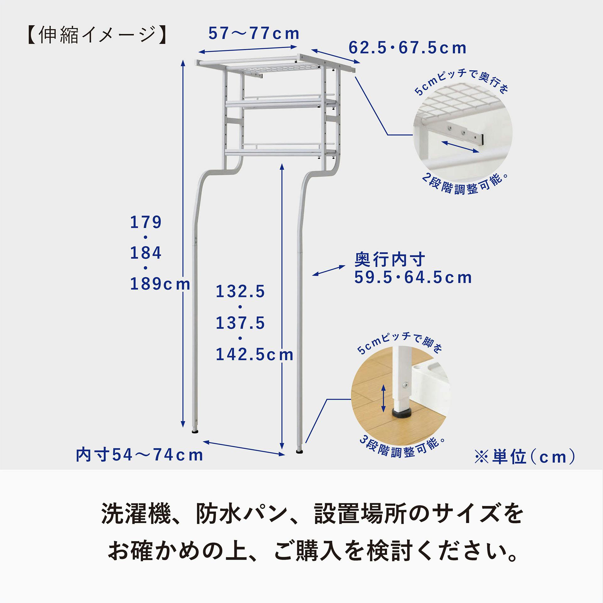 幅57~77×奥行62.5、67.5×高さ179、184、189cm ※棚板寸法幅54×奥行21×高さ1.5cm
