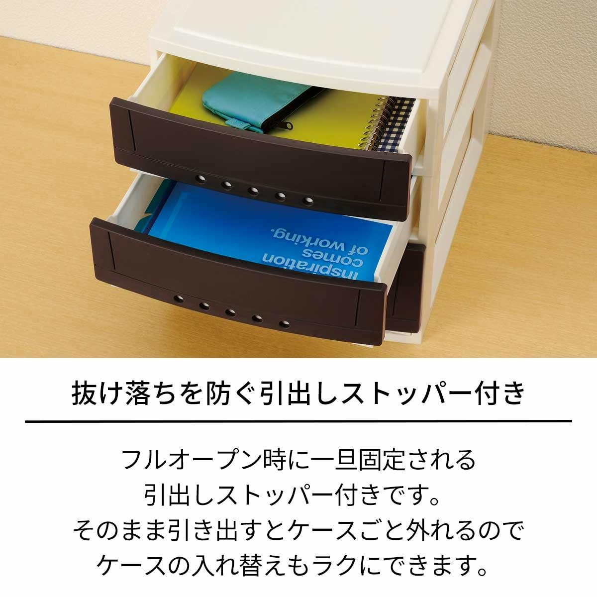 天板がホワイトの人気アイテム!A4サイズの書類やファイルの整理・収納に最適な収納ケースです。引出の抜け落ちを防ぐストッパー付きです。