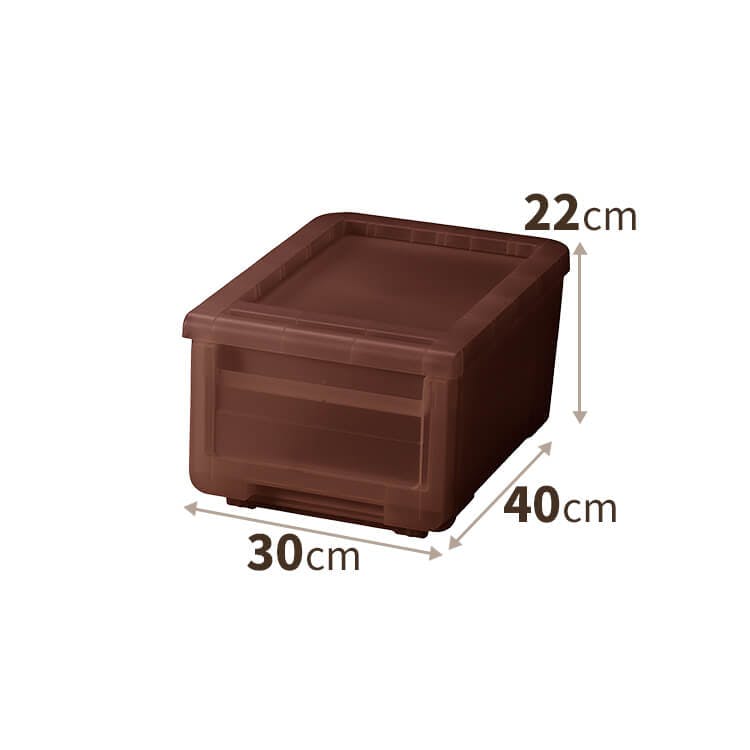 カバコの「底(ソコ)」にセットできる引出しタイプの収納ケースです。引出しストッパーが付いています。また、こちらはどんなインテリアにも合わせやすいクリアブラウンカラー。上品なイメージを演出するので、リビングなどにもおすすめです。※"半透明"の為、収納物が完全には隠れません。ご購入の際はご注意下さい。