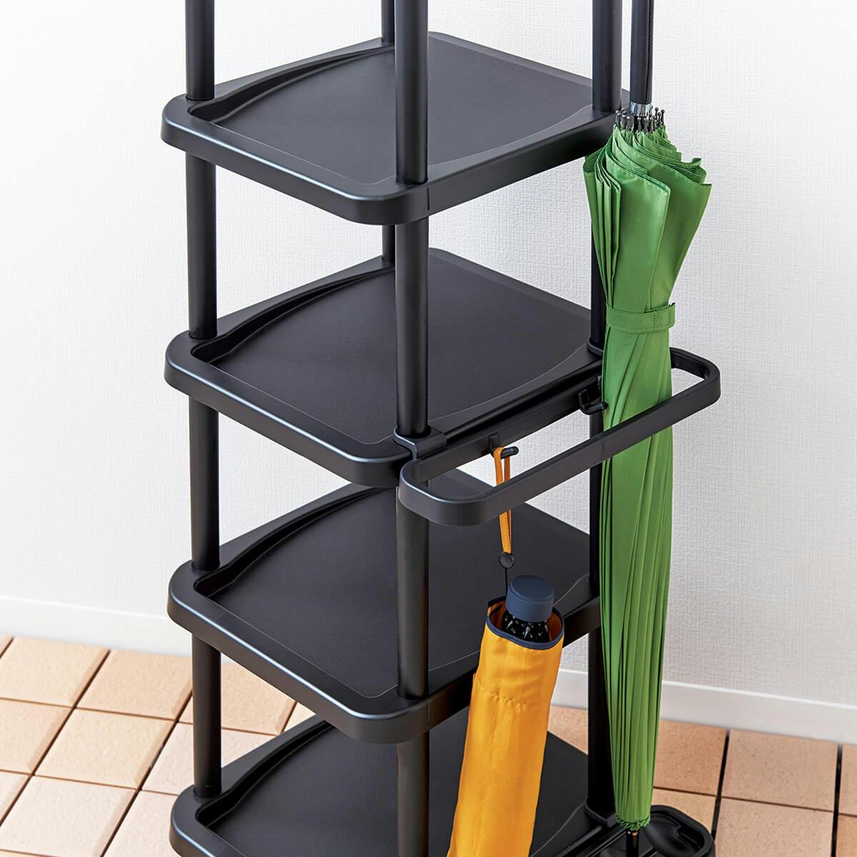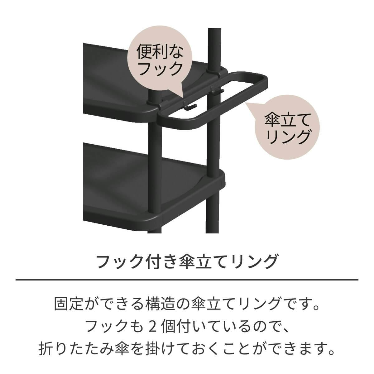 玄関空間を効率的に使える収納棚です。お好きな箇所に付け替え可能なフック付き!