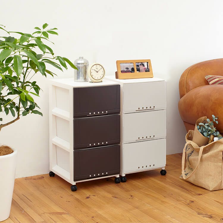 リビングや寝室、子供部屋などシーンを選ばず使える収納チェストです。ストッパー付きキャスター付きなので、スムーズに移動できます。引出しストッパー付きです。