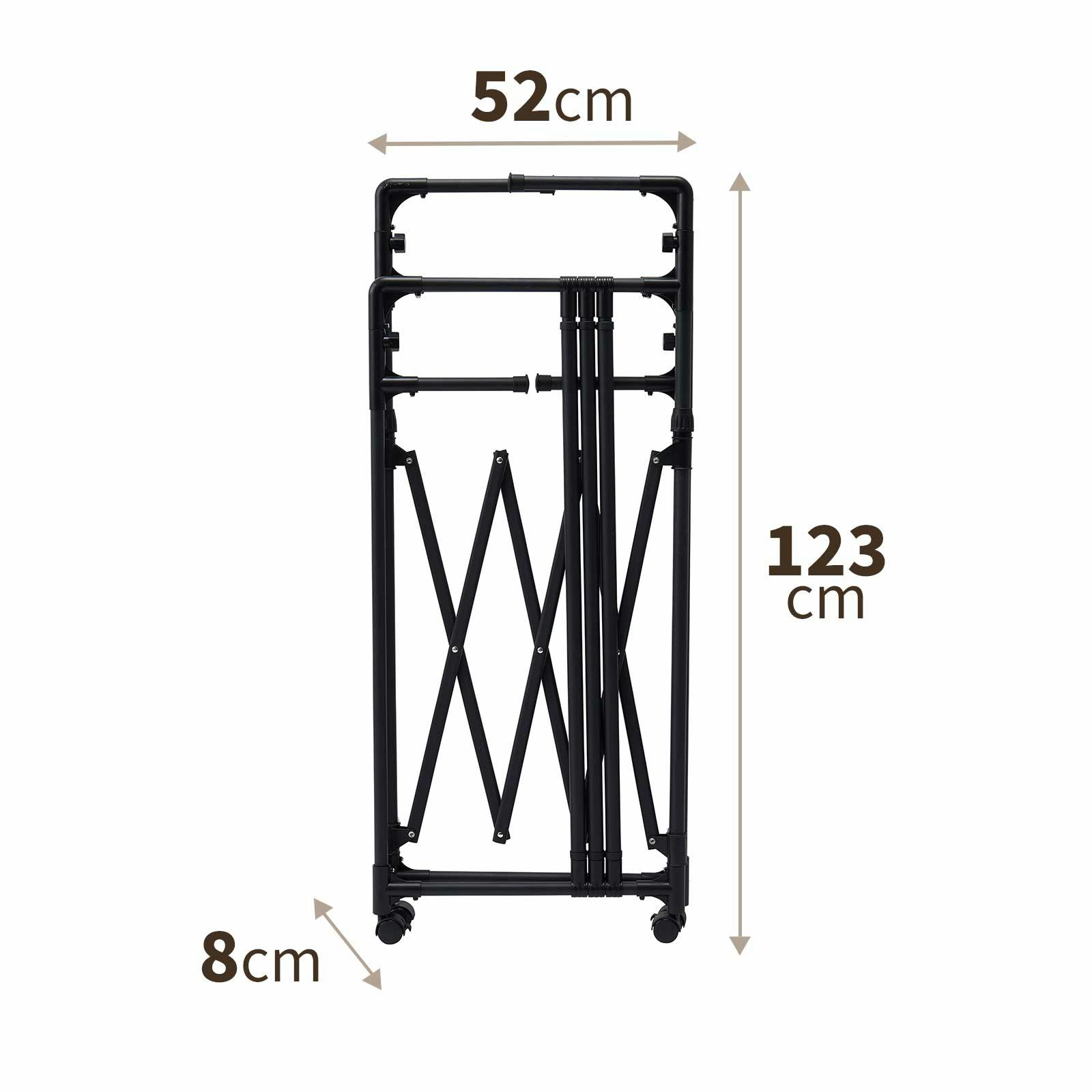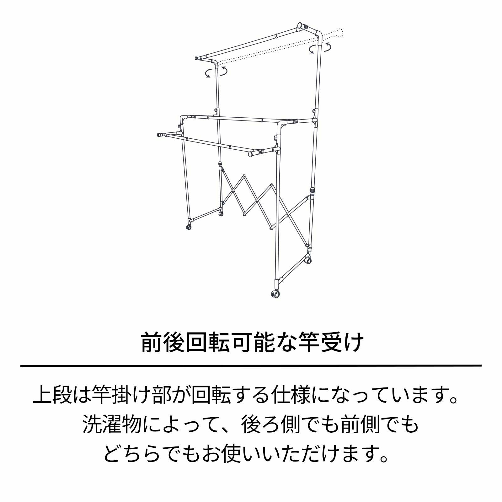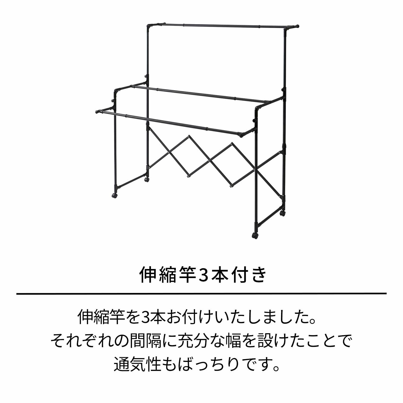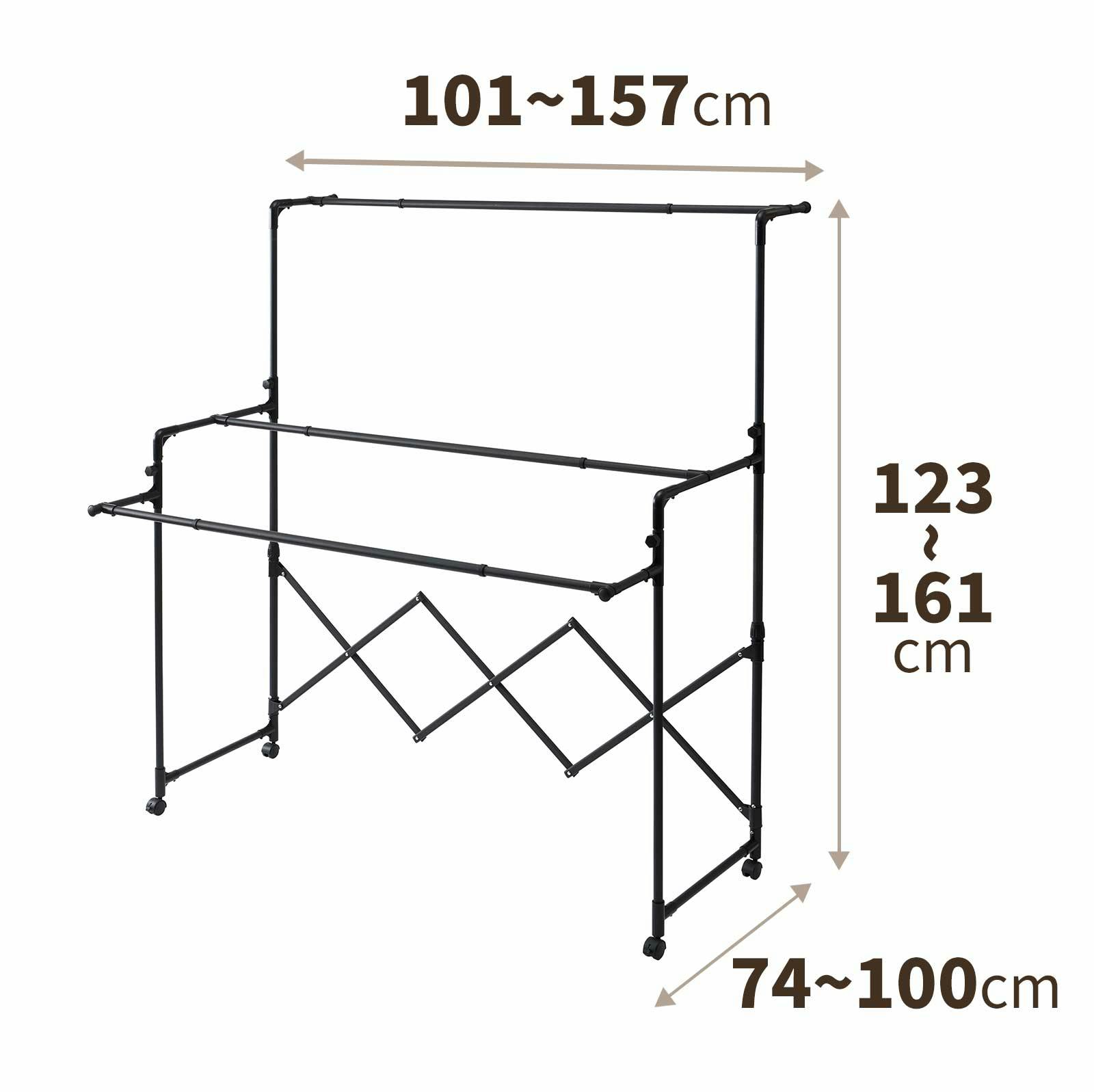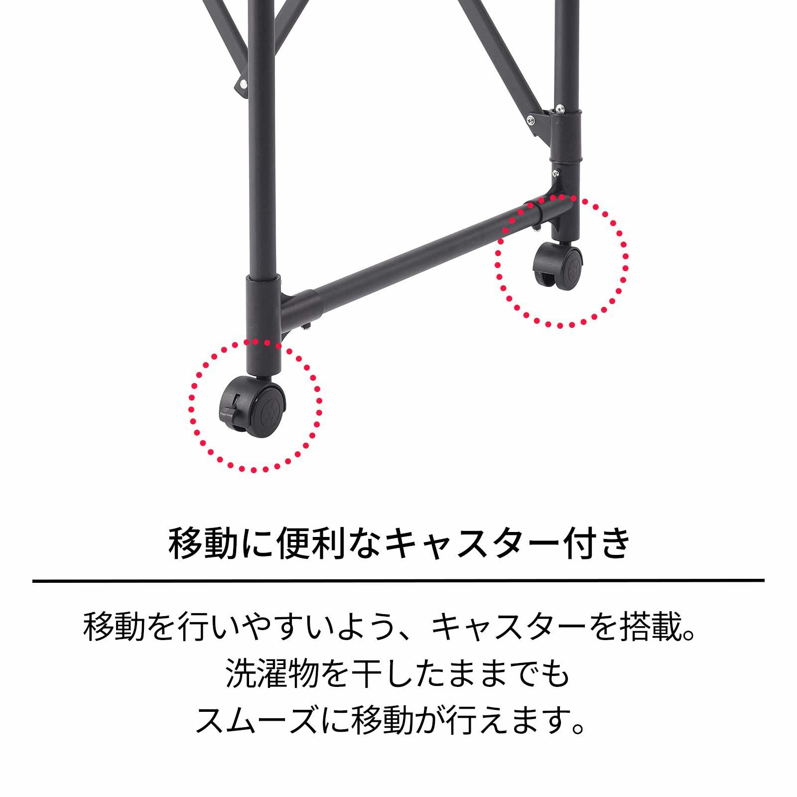 幅や高さを自在に変えられる多機能型物干しです。タオルや衣服、コートなど様々なものを干すことができます。キャスター付きで移動もスムーズ。使用しない時はスリムに収納もできます。