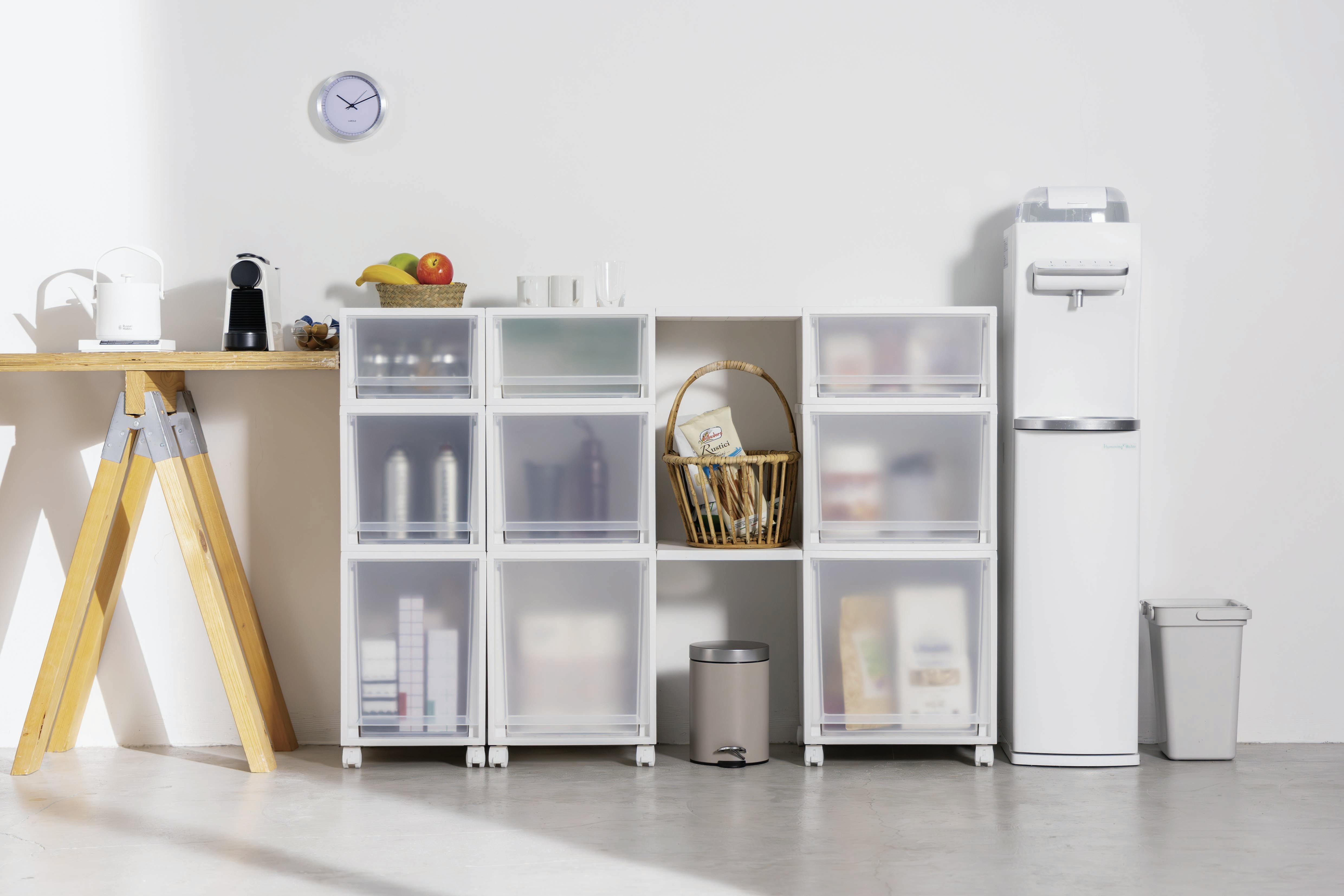 たわみに強く、積み重ねても安定感抜群。前倒れ防止機能や滑りにくいゴム脚付きで使いやすさも追求。さらに、キャスター対応で移動もラクラク。シンプルなデザインと「すりガラス調」の高級感が、お部屋に美しく馴染むアイテムです。※差込式キャスターCSP-40に対応