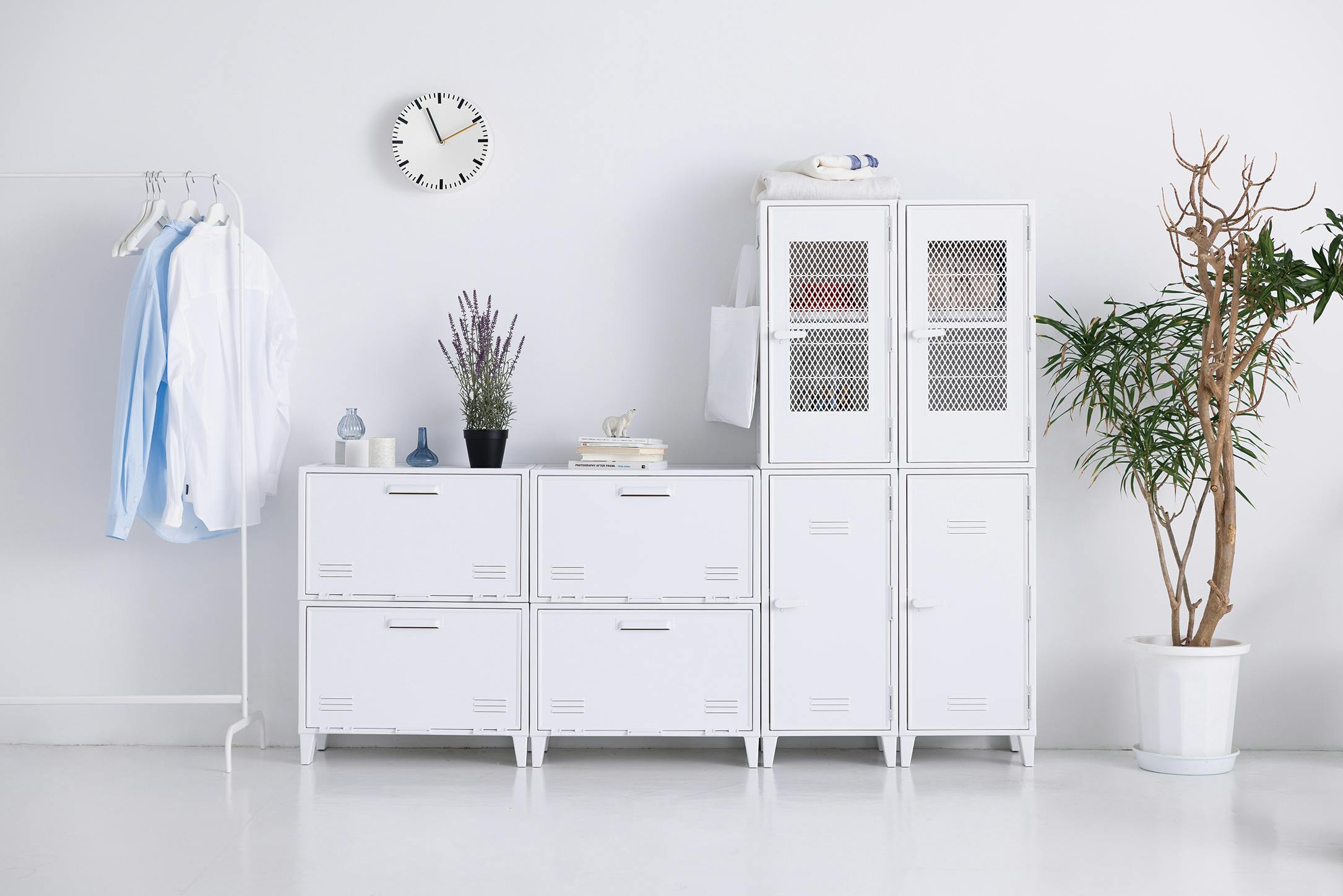 フィッツ ペグ キャビネット メッシュ ホワイト インテリア 扉式 リビング収納 簡単組立 ロッカー風 ヴィンテージ風 扉付き 組み立て簡単 ロッカー 4904746157041【別送品】