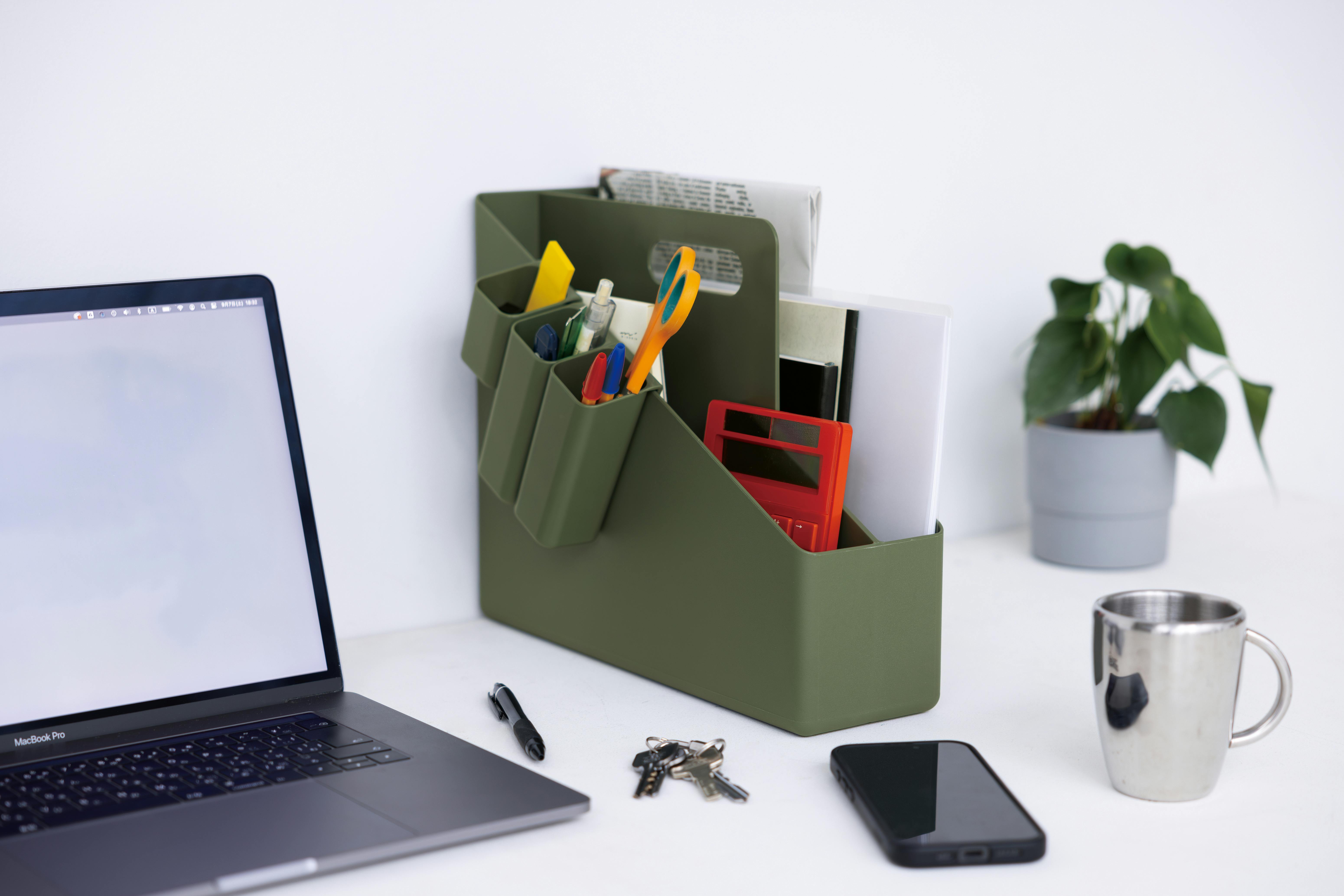 書類やデスク周り文具などを、ひとまとめにして持ち運びできる取っ手付きのファイルボックスで、横置きと縦置きの2種類の使用方法が可能なので用途によってお選びいただけます。