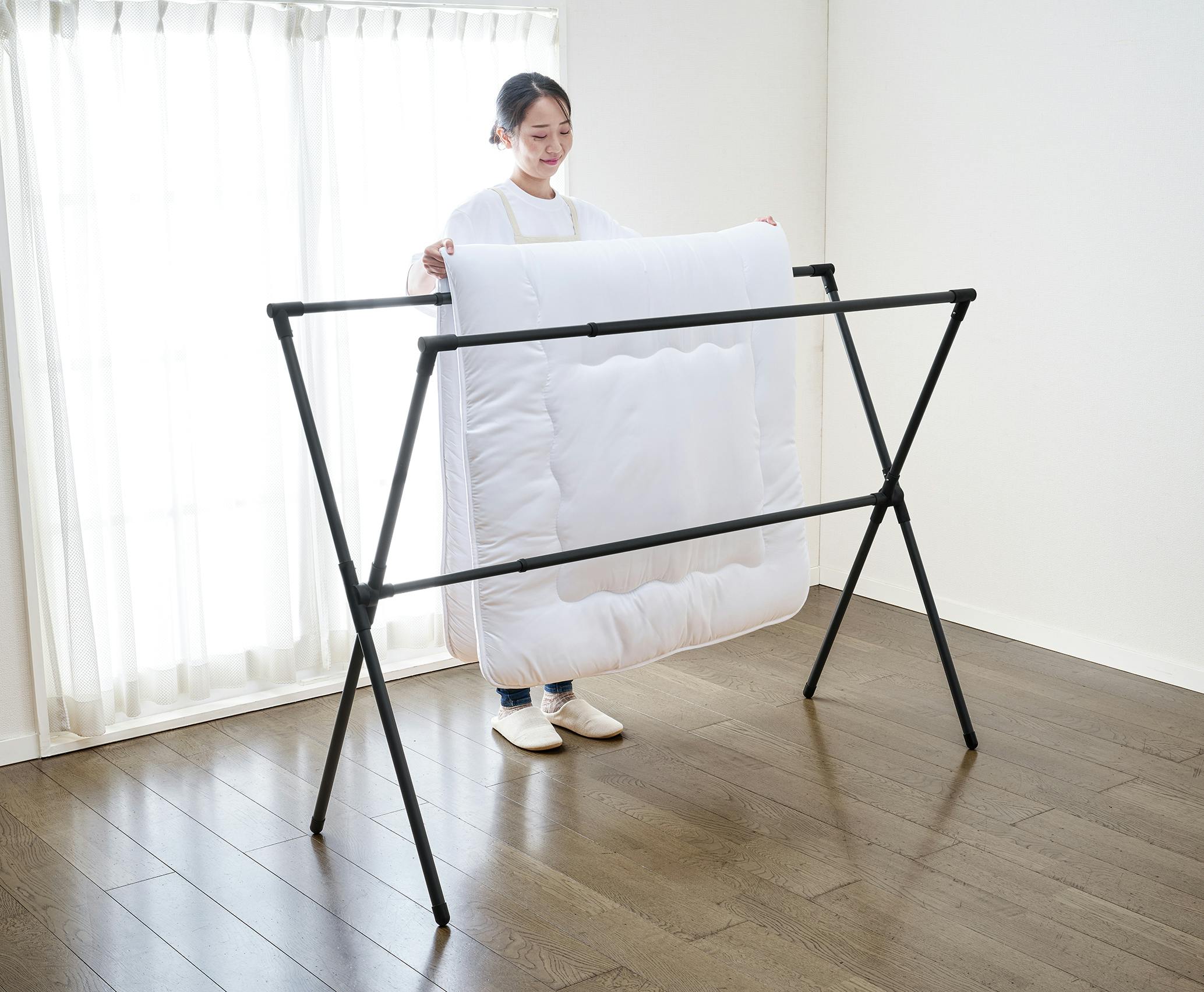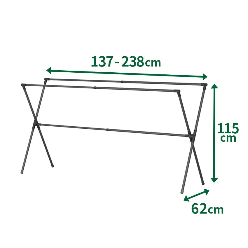 ポーリッシュ ブラック物干し 伸縮式布団4枚干しX型 PSBK-12 屋外用 マットブラック 137~238×62×115 簡単組立 コンパクト サビにくい 811001265【別送品】
