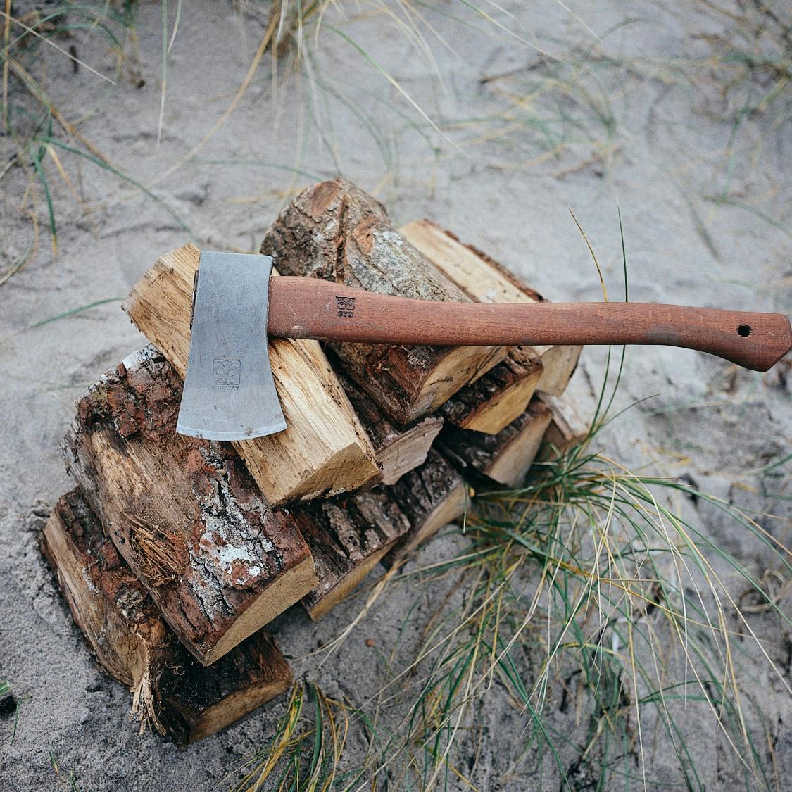 ブッシュクラフトやキャンプで薪づくりや枝払いなどに活躍する斧。手になじむように形作られた柄は握りやすく長時間の作業にも適しています。刃と柄にはノルウェーのオヨ社の特徴であるふくろうのロゴマークが刻印されています。専用の革ケース付きで持ち運びや保管も安心。