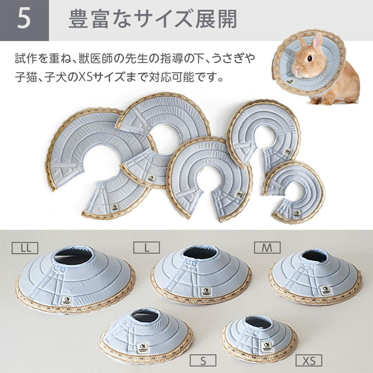 術後の傷なめ予防に効果的な日本製 抗菌・抗ウイルス素材を使用したエリザベスカラーです。超軽量で柔らかく、ストレスを軽減。首元はプランサーで装着しやすく、2段階調節も可能。