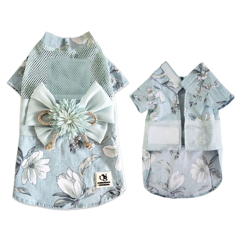 ふんわり帯飾りが可愛い浴衣風ペットウェアです。 背中のお花は取り外し可能。ヘアピン仕様で、取り外して頭などにつけても可愛いです。毛に付きにくいマジックテープで、着せるときも安心。