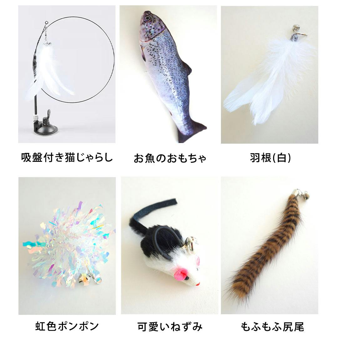 ONEKOSAMA OINUSAMA ねこじゃらし&お魚おもちゃ 6点ギフトセット ポンポン 猫 丈夫 鈴付 取り換え羽根 ons0051-pom【別送品】