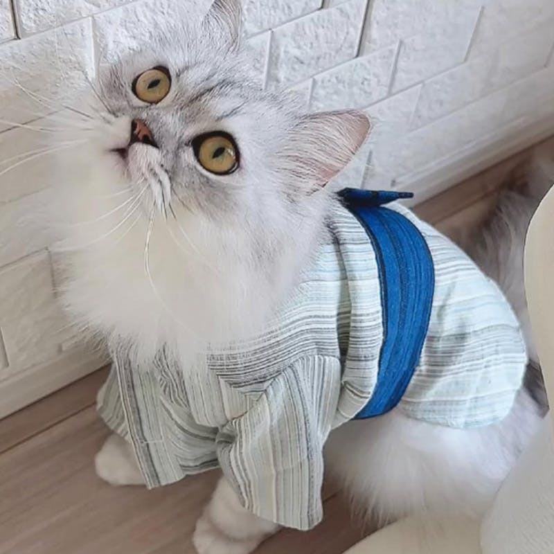 • ONEKOSAMA OINUSAMA DESIGNERS GUILD 浴衣 ペットウェア ストライプ柄 ホワイト 4L 中型犬 洗える ons0100-wh-4L【別送品】