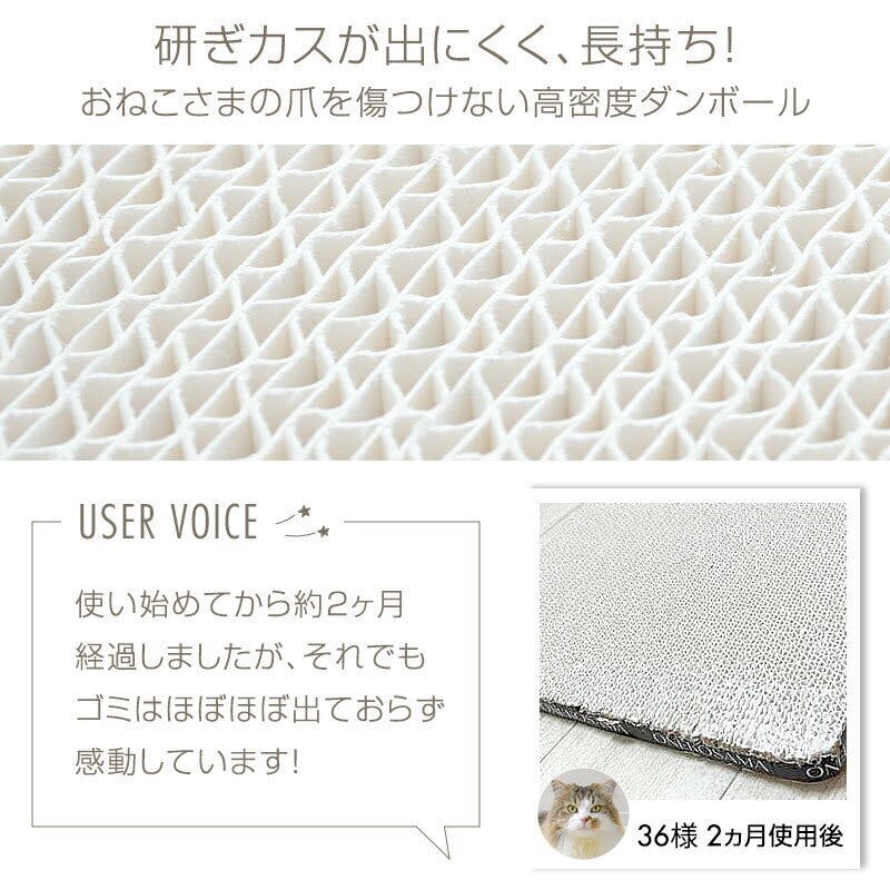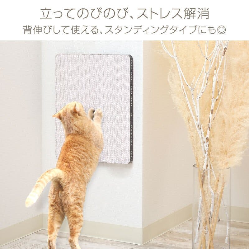 両面テープ付きで床に固定するのはもちろん、壁や窓にも貼り付けが可能です。おねこさまは好奇心が旺盛なので、配達などで外から届くことの多いダンボールを好む傾向があります。爪とぎにはダンボールを選び、好奇心を刺激してあげましょう!