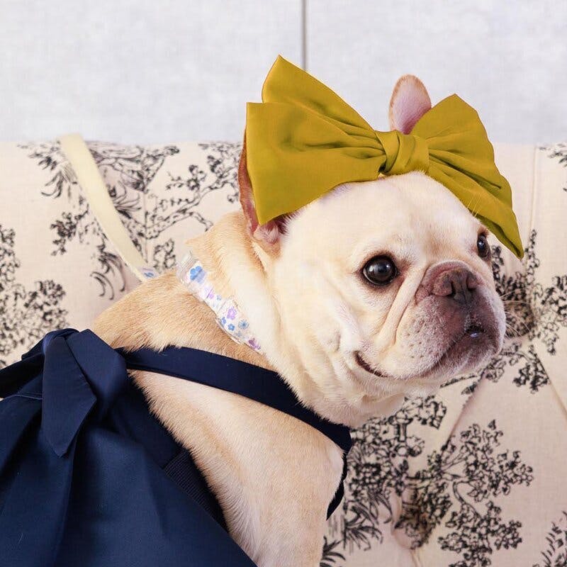 なめらかで、ツルツルとした肌触りが心地良いサテン素材が上品で高級感のある光沢感を生み出します。片手で簡単に取り付け可能なクリップタイプ。 短毛種でも取り付け可能なコットンレースリボン付きです。