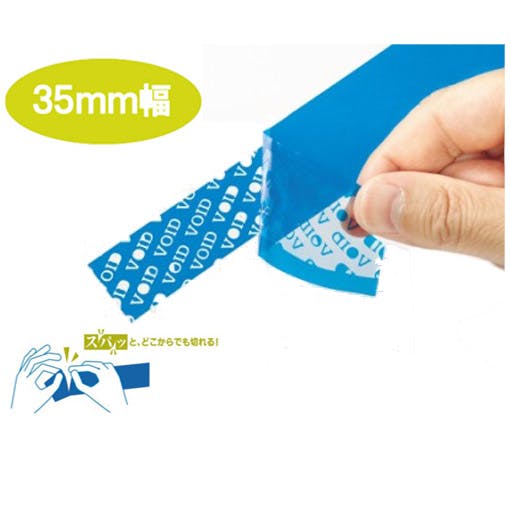 一度貼り付けると、剥がした際に基材破壊が起きて剥がした事が分かります。手で切れるようにテープにはカットが入っており便利です。