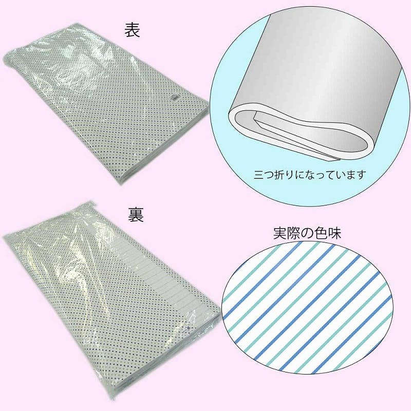 白地にブルーとグリーンのストライプが入ったさわやかな包装紙です。