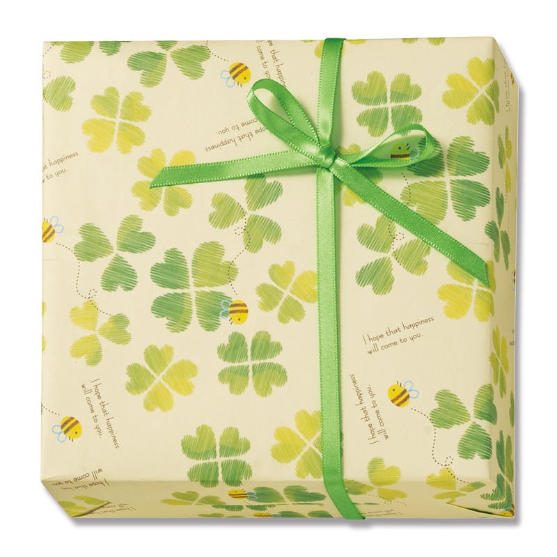 幸運のモチーフであるクローバーとミツバチをあしらったやさしい色合いの包装紙です。普段のギフトにはもちろん、快気祝いにも。