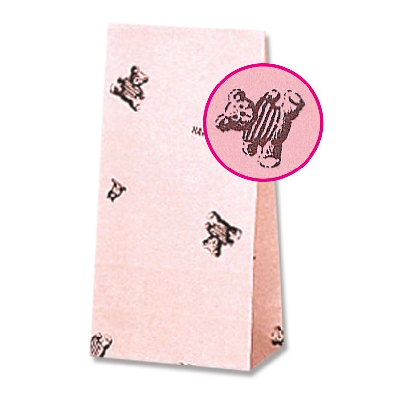 ピンク地に可愛い熊さんをデザインしました。お菓子屋さんやお子様向けのちょっとしたプレゼントにご利用ください。