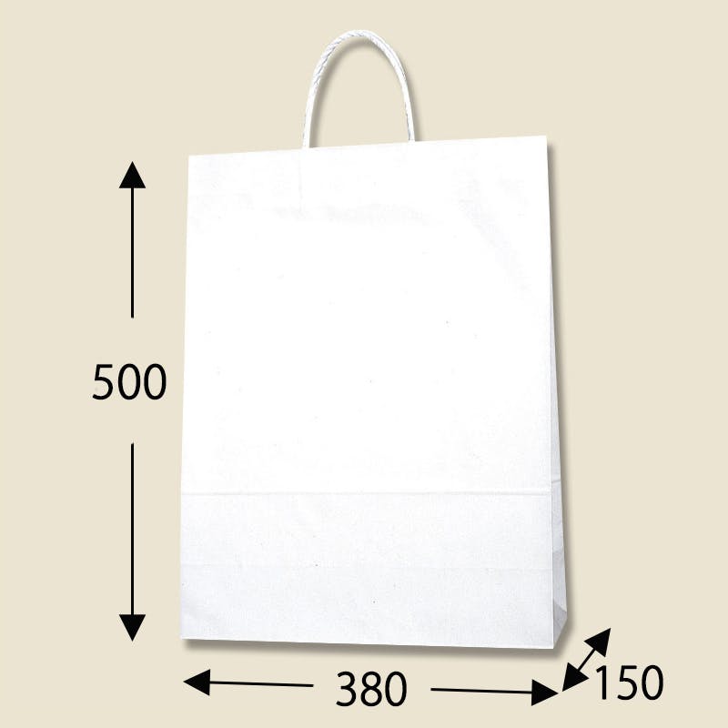 樹脂製の接着剤で手紐を取り付けた手提げ紙袋です。紐の結び目がなくすっきりし、物の出し入れがスムースで、ストックする際にかさばらないメリットがあります。大型サイズの中でも定番の縦型フォルム。汎用性の高い白無地。●手紐:PP紐白●入数:25枚