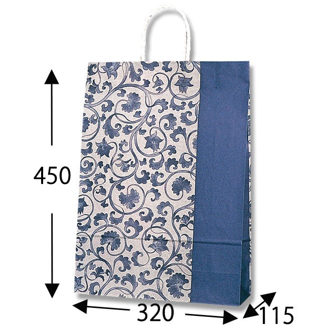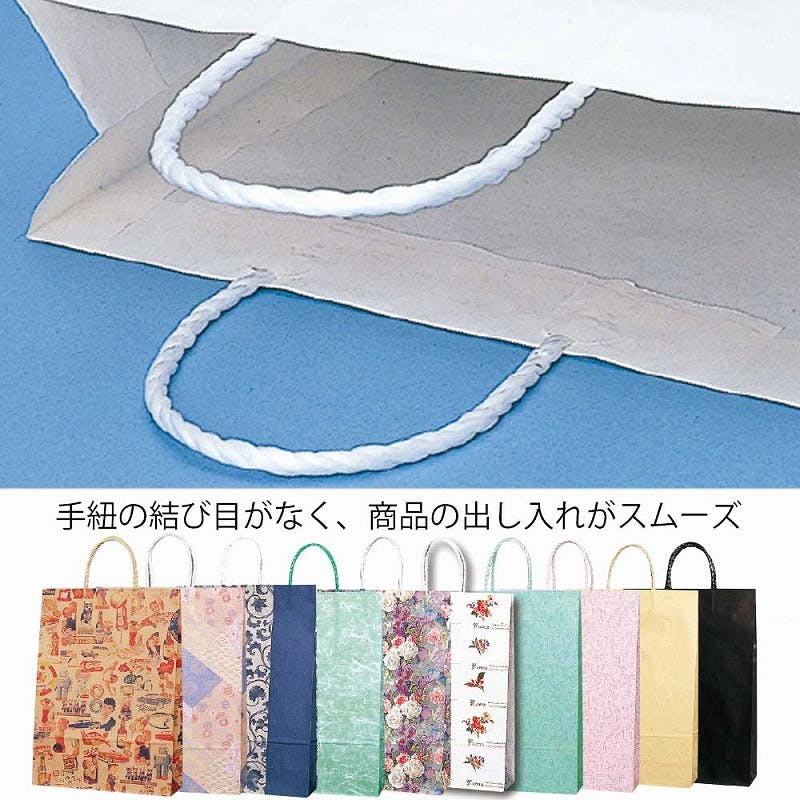 樹脂製の接着剤で手紐を取り付けた手提げ紙袋です。紐の結び目がなくすっきりし、物の出し入れがスムースで、ストックする際にかさばらないメリットがあります。縦長のスタンダードサイズで、A3縦対応。深い藍の色が厳かな雰囲気を醸し出します。仏事用途にもご利用いただけます。●手紐:PP紐白●入数:25枚