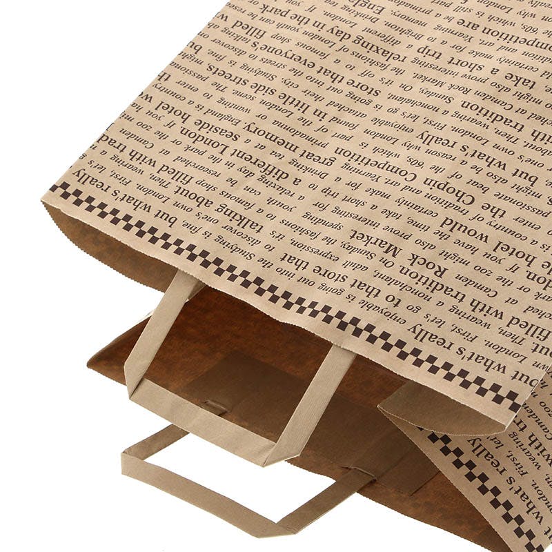 ハンドルは一般的な平紐の幅10mm幅よりも太めの13mm幅を採用しているので、手にやさしく持ちやすい紙袋です。エレガントな英字デザインで、マチ広タイプ。ホールケーキやバームクーヘンなどに対応したマチ広の袋です。おすすめ食品箱:洋生白D・E/ネオクラフトケーキBOX LL/手提げデコホワイト6寸●入数:50枚