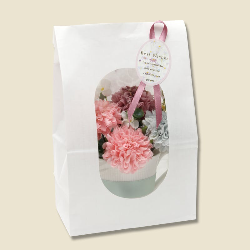 お菓子や小さめギフトにおすすめの窓付き紙袋です。窓越しに中身が見えます。内側は全面にラミネートされており、マチがしっかりしています。●入数:50枚