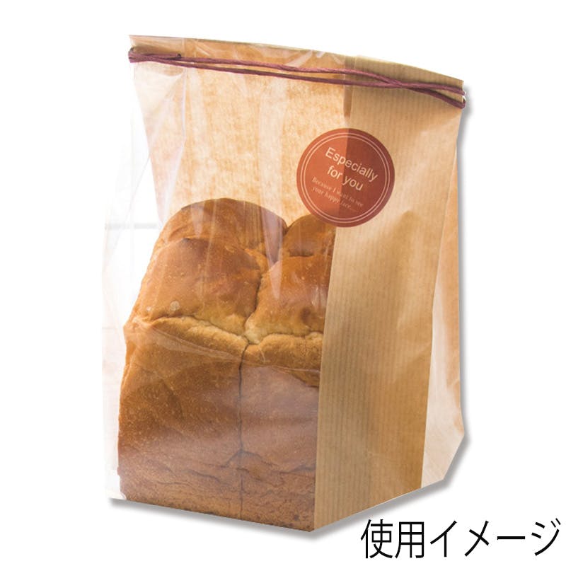 フィルムと紙を貼合した素材を使用したガゼット袋ですが、正面の一部分が透明フィルムのみになっているため、内容物を見せて包装できます。空気穴が開いているため、焼きたてのパンを入れてもくもりません。●入数:100枚