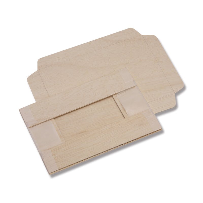 マメ科の広葉樹の一種、ファルカタという早生樹を使用した食品箱です。柔らかくて避けにくく、和テイストの風合いを持つ素材です。CO2等の温室効果ガス削減に貢献します。角形タイプ。ワンタッチの組立式で、組立前は板状のため省スペース収納が可能です。同素材のフタ「和菓子4個」は別売です。●電子レンジ使用可●オーブン使用不可●入数:50個