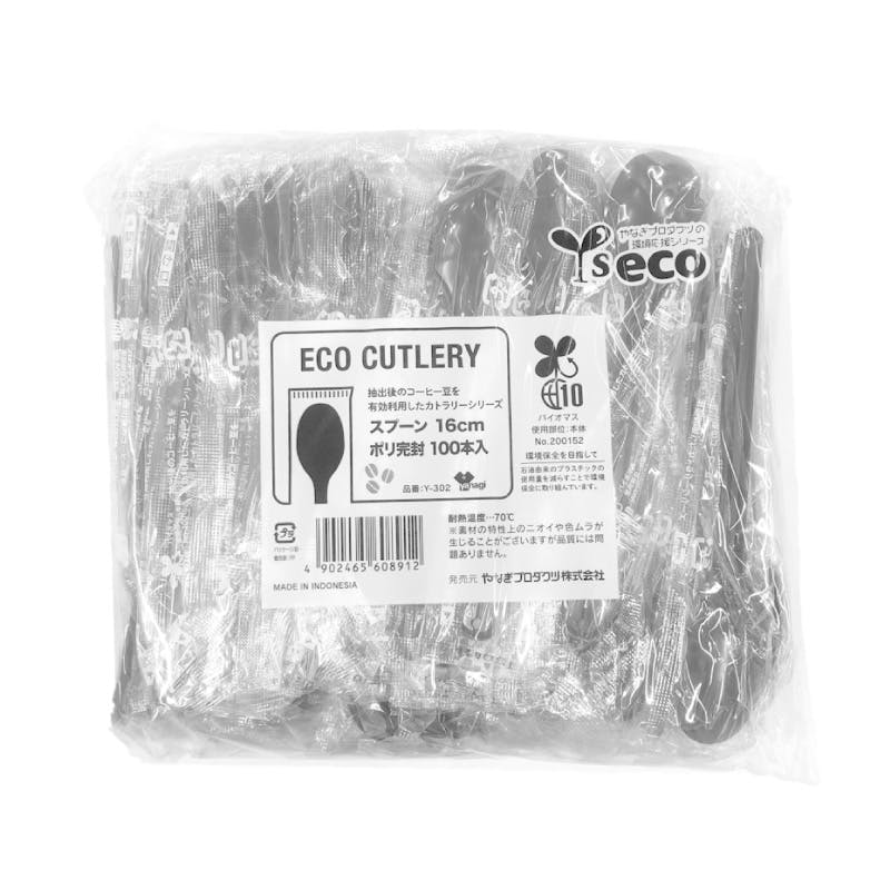 抽出後のコーヒー殻を特殊技術でプラスチックと合成して製品化したカトラリーです。有機資源のリユースを促進し、石油由来のプラスチック使用量を削減して、自然環境への負荷を軽減します。バイオマスマーク認定商品。●耐熱温度:70℃●入数:100本