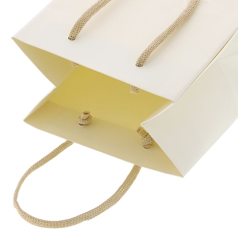エンボスの入った自然で柔らかい風合いの特殊紙を使用した紙袋です。持ち手は一般的な石油由来のアクリル紐ではなく、柔らかく環境にやさしい紙紐を採用。紙製とは思えないしなやかさです。お店のイメージや、プレゼントするアイテムに合わせて選べるカラーバリエーションも魅力。●入数:5枚 ●手紐:紙紐(ベージュ)