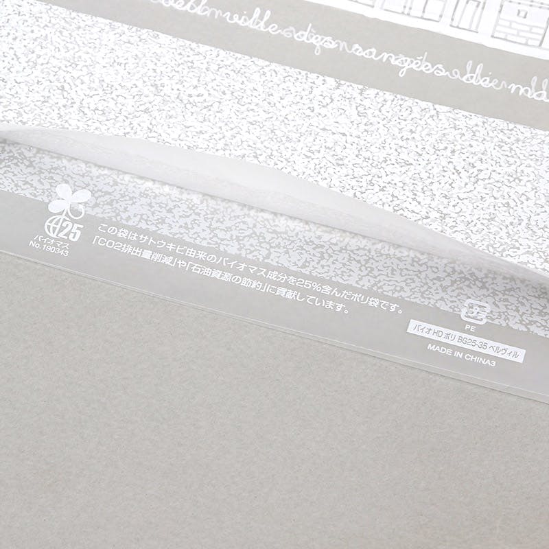 生物由来の有機資源を原料としたバイオマス成分を25%含んだ底マチ付の手抜きポリ袋です。ヨーロッパの小さな町並みをモチーフにしたデザイン。バイオマスマーク取得済みで、「プラスチック製買物袋有料化制度」の対象外とすることが可能です。主原料のサトウキビは、育成時に光合成をして大気中のCO2を吸収するため、石油化学由来の原料と比較すると大幅なCO2の削減に貢献します。※穴から下の高さは多少前後する場合があります。●入数:100枚●両面印刷