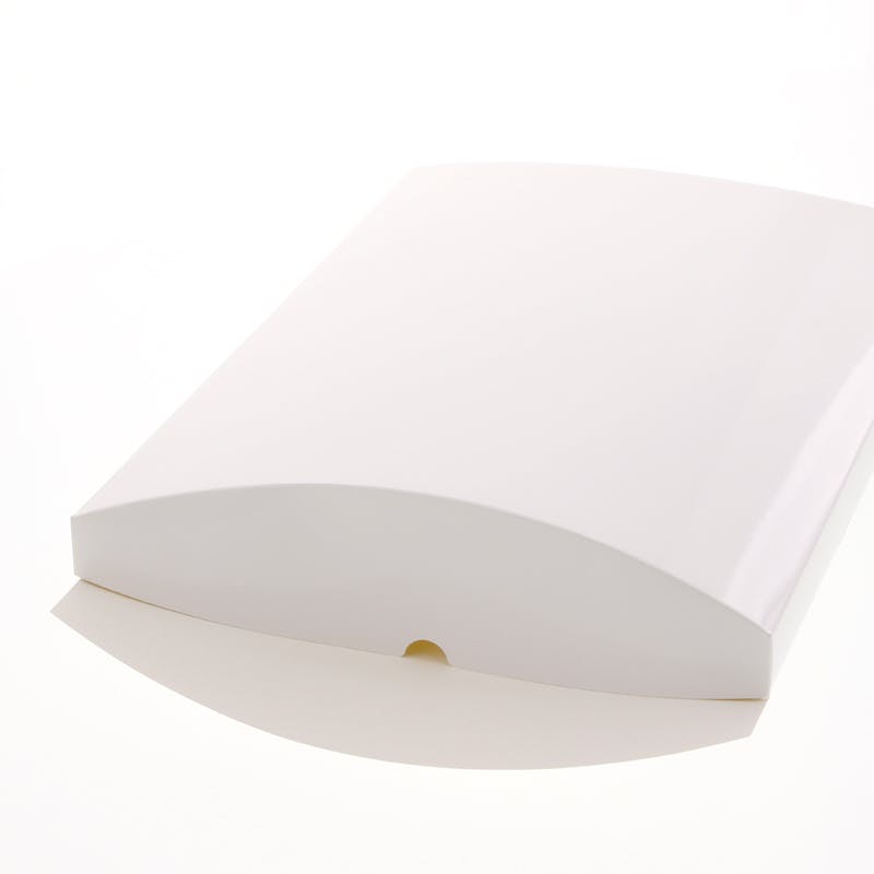 組み立てると枕(ピロー)型になるギフトボックスです。ギフトシールなどで飾ると、簡単にラッピングが仕上がります。表面は光沢を持たせてあり、高級感があります。マチの付いたゆったりサイズなので、ワイシャツやブラウスなどに。商品を封入する際は、OPP袋や薄葉紙などの緩衝材を組み合わせることで、商品が安定しかつ保護されます。10枚入り。